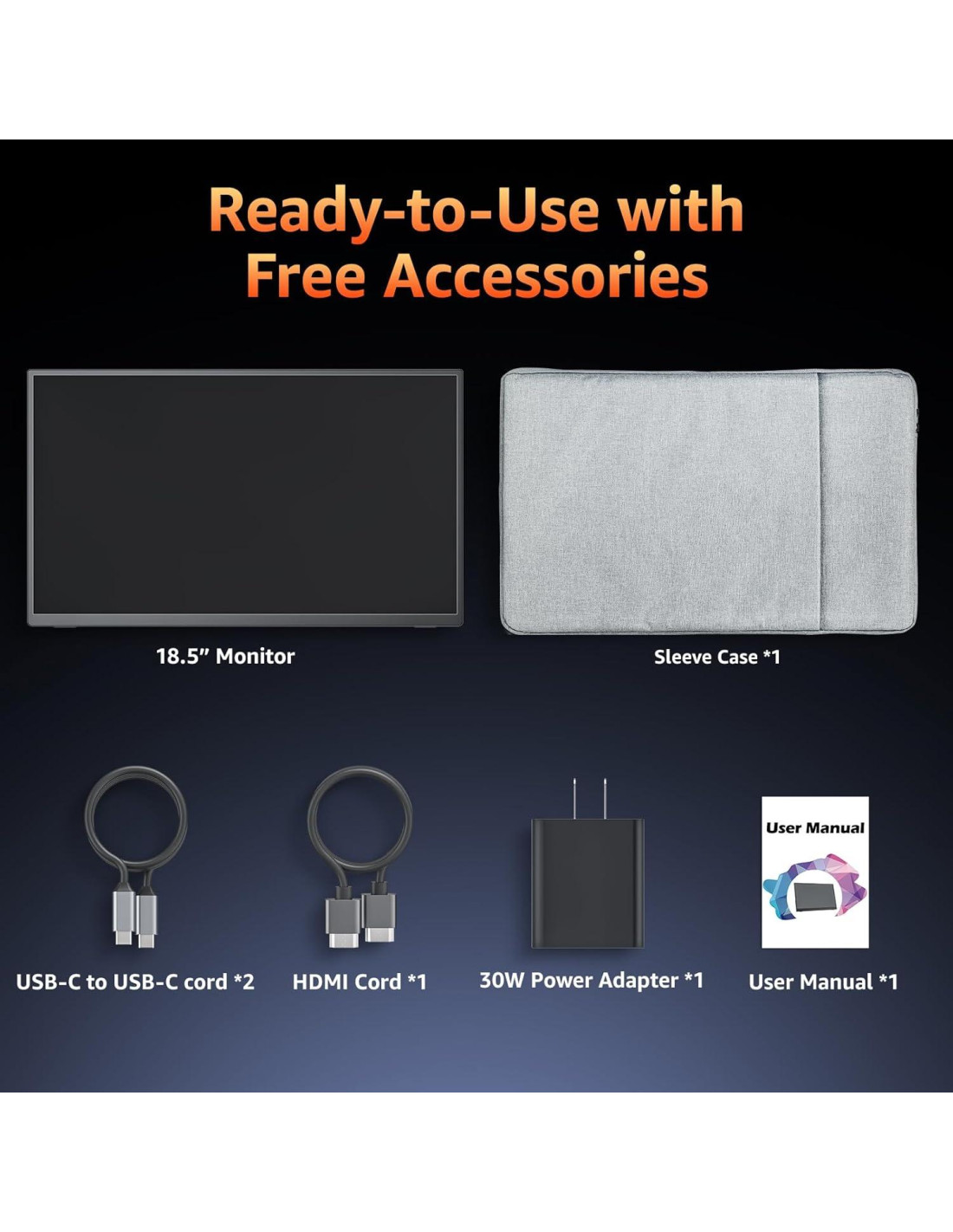 - [Monitor portátil grande, Ligero y Sin Marco]: Experimente una visualización más grande con esta pantalla IPS de 18.5 pulgadas 1080P FHD, con un diseño sin marco en 4 lados, ideal para multitareas y trabajos detallados. Pesando solo 1.02 kilogramos (2.24 libras), con un grosor mínimo de 0.64 cm (0.25 pulgadas) y un grosor máximo de 1.24 cm (0.49 pulgadas), lo que facilita su transporte para profesionales en movimiento y espacios de trabajo compactos.