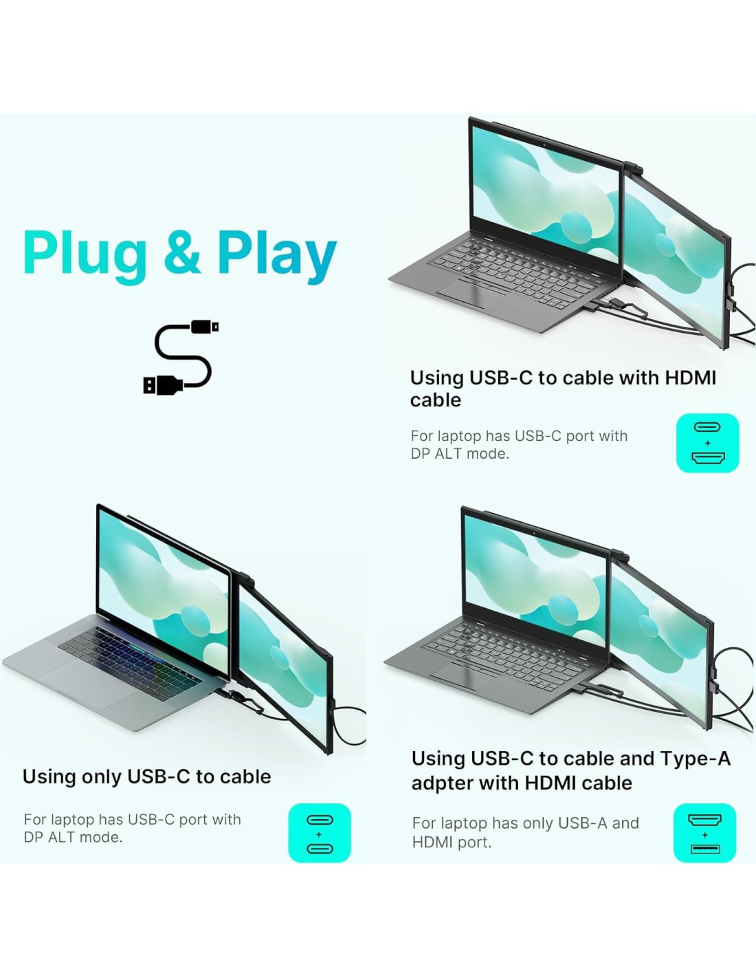 - Modos de Visualización Versátiles: Cambia entre modos paisaje, retrato, presentación o soporte; Ya sea programando, presentando o editando, este monitor acoplable para laptop se adapta a todas tus necesidades