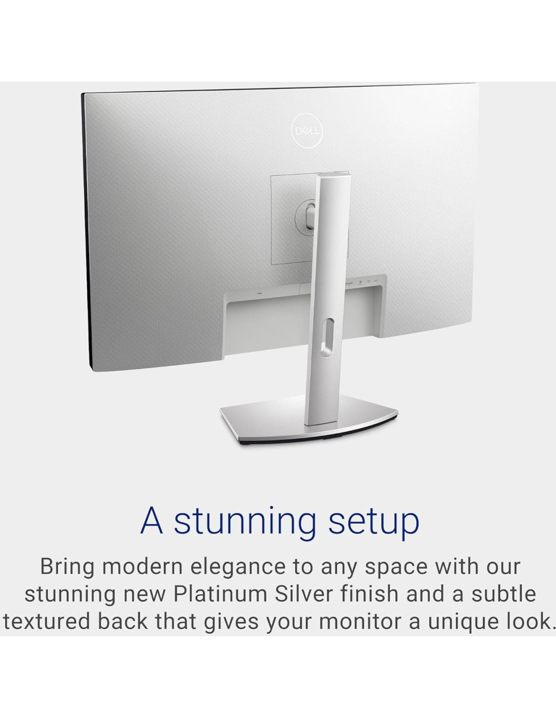 Complementa tu espacio: El monitor USB-C S2722DC de 27 pulgadas inspirado en el estilo de vida con visuales excepcionales y conectividad USB-C. Un cable te permite transferir video, audio y datos junto con la entrega de energía. Alta funcionalidad se encuentra con un estilo superb con un diseño de bisel ultradelgado de tres lados que te permite ver más con menos distracción en esta pantalla de 27 pulgadas. Y la tecnología de Conmutación en el Plano (IPS) junto con una cobertura de color sRGB del 99% te permite ver colores extraordinarios a través de un amplio ángulo de visión. Mantente organizado entre aplicaciones, correos electrónicos y ventanas en una sola pantalla usando Dell Easy Arrange.