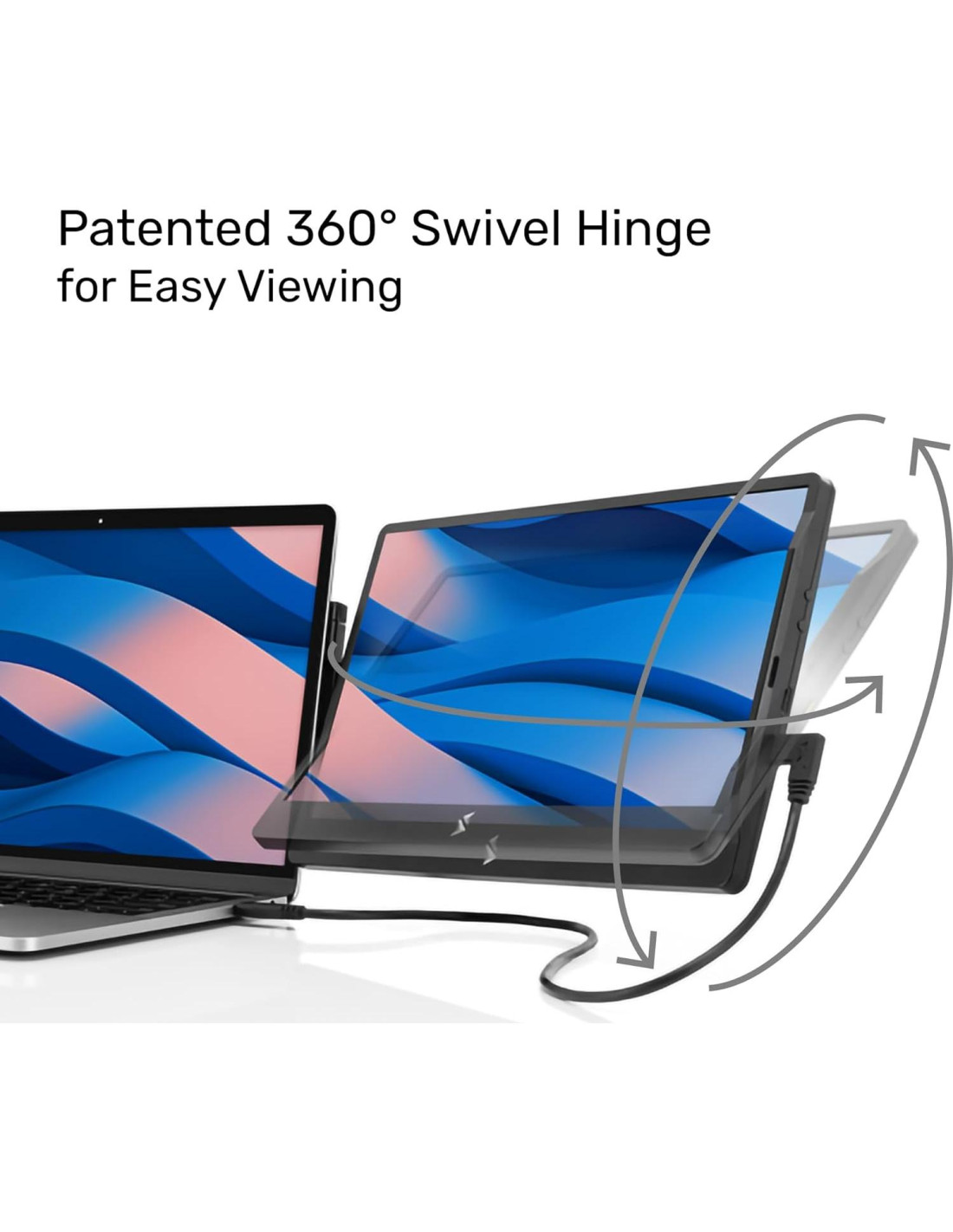 - Bisagra Giratoria Patentada de 360 - La bisagra giratoria patentada de 360 ofrece un rango completo de movimiento, permitiéndote girar el monitor portátil para laptop 360 o rotarlo 270. Esta flexibilidad lo hace perfecto para compartir pantallas, colaborar y encontrar el ángulo de visualización ideal para tu configuración, haciendo que tu arreglo de doble monitor sea más versátil y productivo.