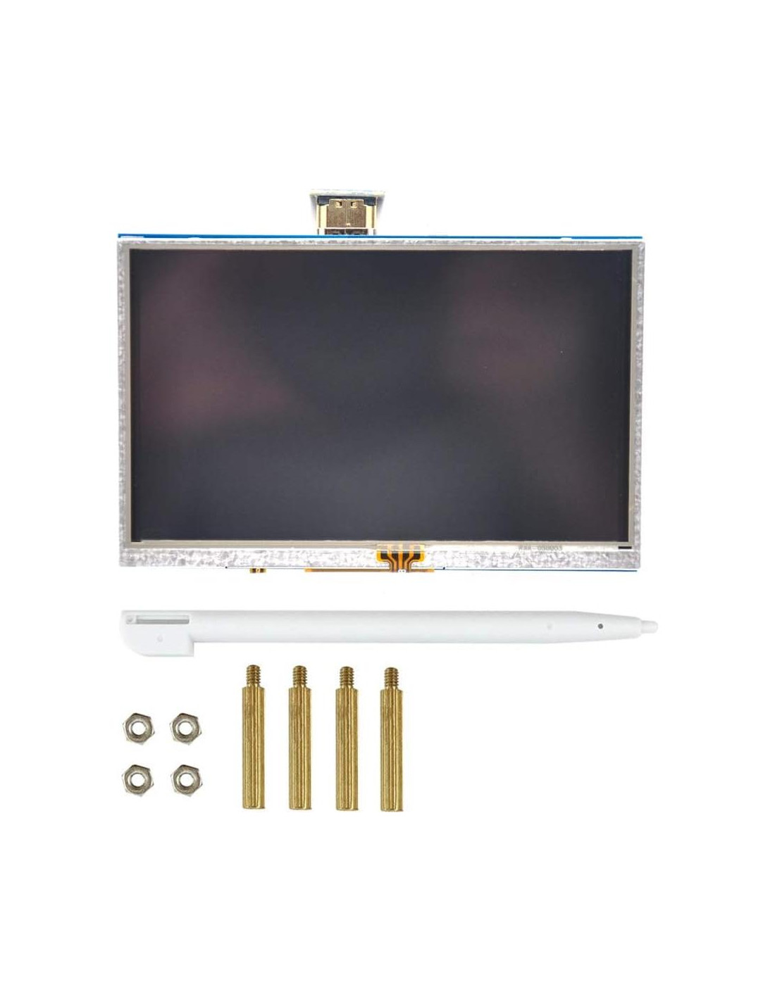 Características Una buena solución para aquellos que buscan una pantalla de mayor resolución Diseñada para Raspberry Pi, una solución alternativa ideal para monitor Soporta cualquier revisión de Raspberry Pi (conexión directa) Resolución 800x480, mejor visualización Buena respuesta táctil Gran ángulo de visión Tiempo de respuesta rápido Para Raspberry Pi B+/2B Raspberry Pi 3B Con guía de usuario detallada e imagen Especificaciones Pantalla táctil resistiva TFT de 5 pulgadas, Resolución 800x480 Entrada HDMI Alimentación por USB, 5V IC controlador LCD: ILI9486L Tasa de refresco: 60HZ Tamaño de LCD: 120mm*78mm Lista de paquete Pantalla LCD Táctil de 5 pulgadas x1 Conector HDMI x1 Lápiz táctil x1 CD x 1 Nota Después de instalar el controlador, la función táctil funcionará. Atención: cuando reciba el artículo y lo pruebe, si la pantalla aparece BLANCA VACÍA, LÍNEA BLANCA, PANTALLA NEGRA, SIN FUNCIÓN TÁCTIL y PARPADEANDO, no se preocupe, instalar el siguiente controlador resolverá el problema. Como monitor de computadora, la función táctil no estará disponible.