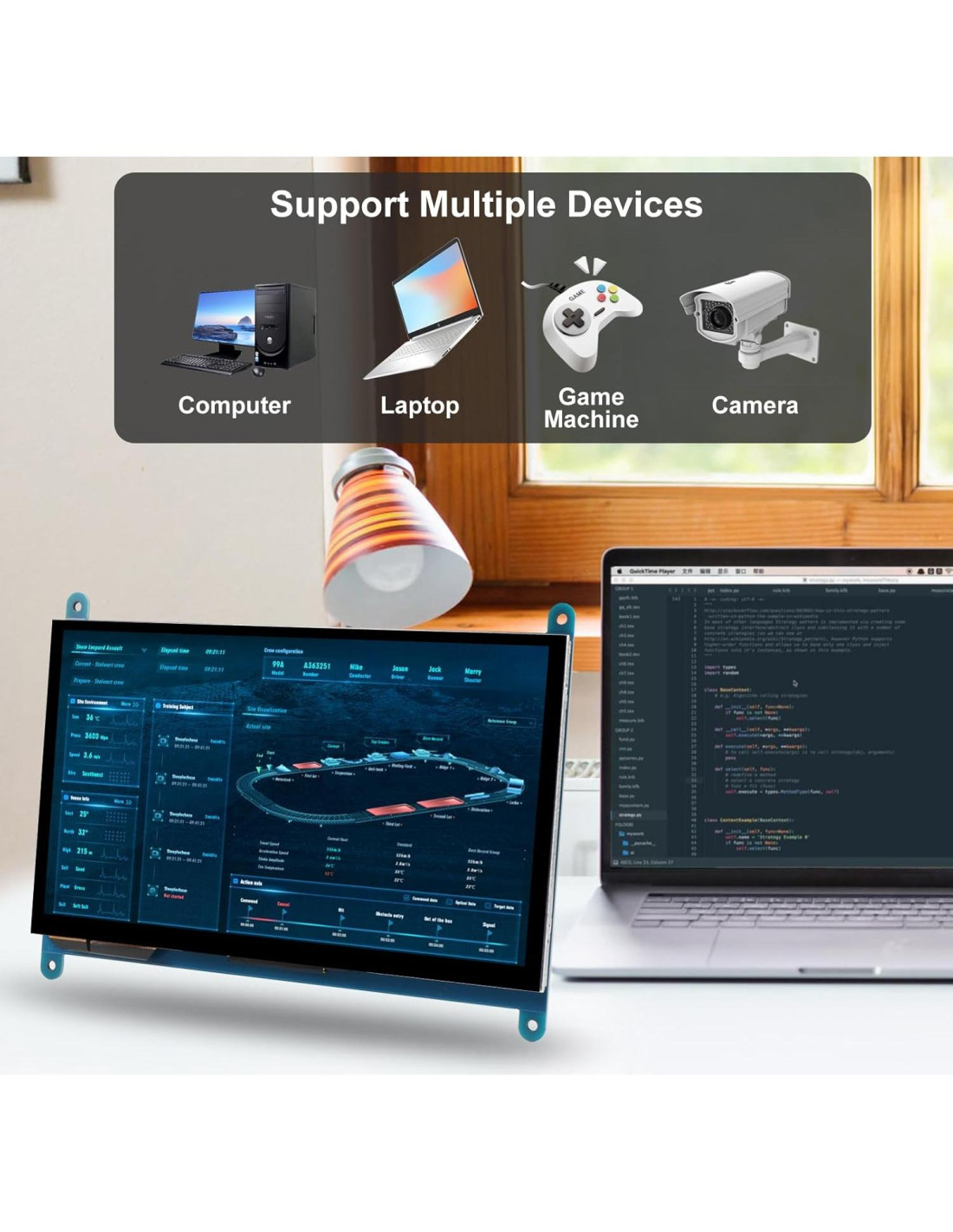 - Multi-aplicación: Usando esta pantalla como una pantalla secundaria de la caja de la computadora, puedes monitorear la temperatura del hardware en tiempo real y proteger mejor tu computadora. También se puede usar como tu pantalla de juego o mini TV, como conectar con Switch, disfrutar del entretenimiento en cualquier momento y lugar. Y puede conectarse a asistentes de hogar inteligente, para que puedas controlar fácilmente todos los dispositivos en tu hogar y realizar la automatización del hogar. También se puede usar como pantalla de monitoreo CCTV.