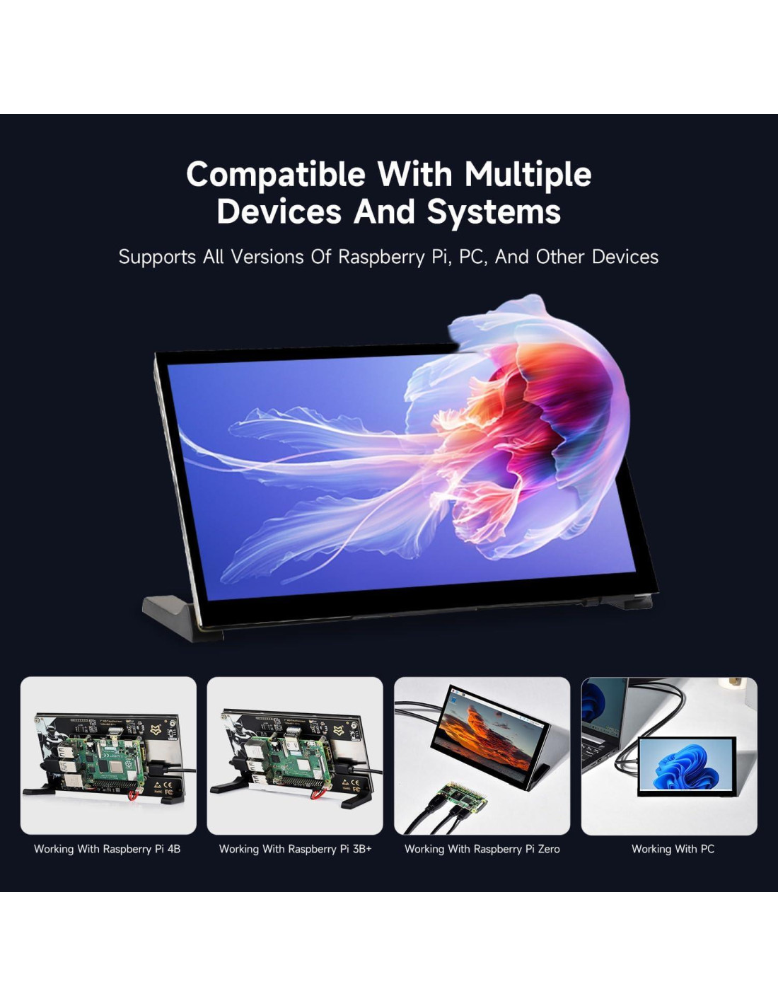 - Alta Definición IPS-----Esta resolución de 1024x600 para la pantalla táctil de pi te ofrece visuales suaves y naturales. Nuestra pantalla portátil para laptop cuenta con un ángulo de visión amplio de 170, asegurando calidad consistente desde diferentes ángulos