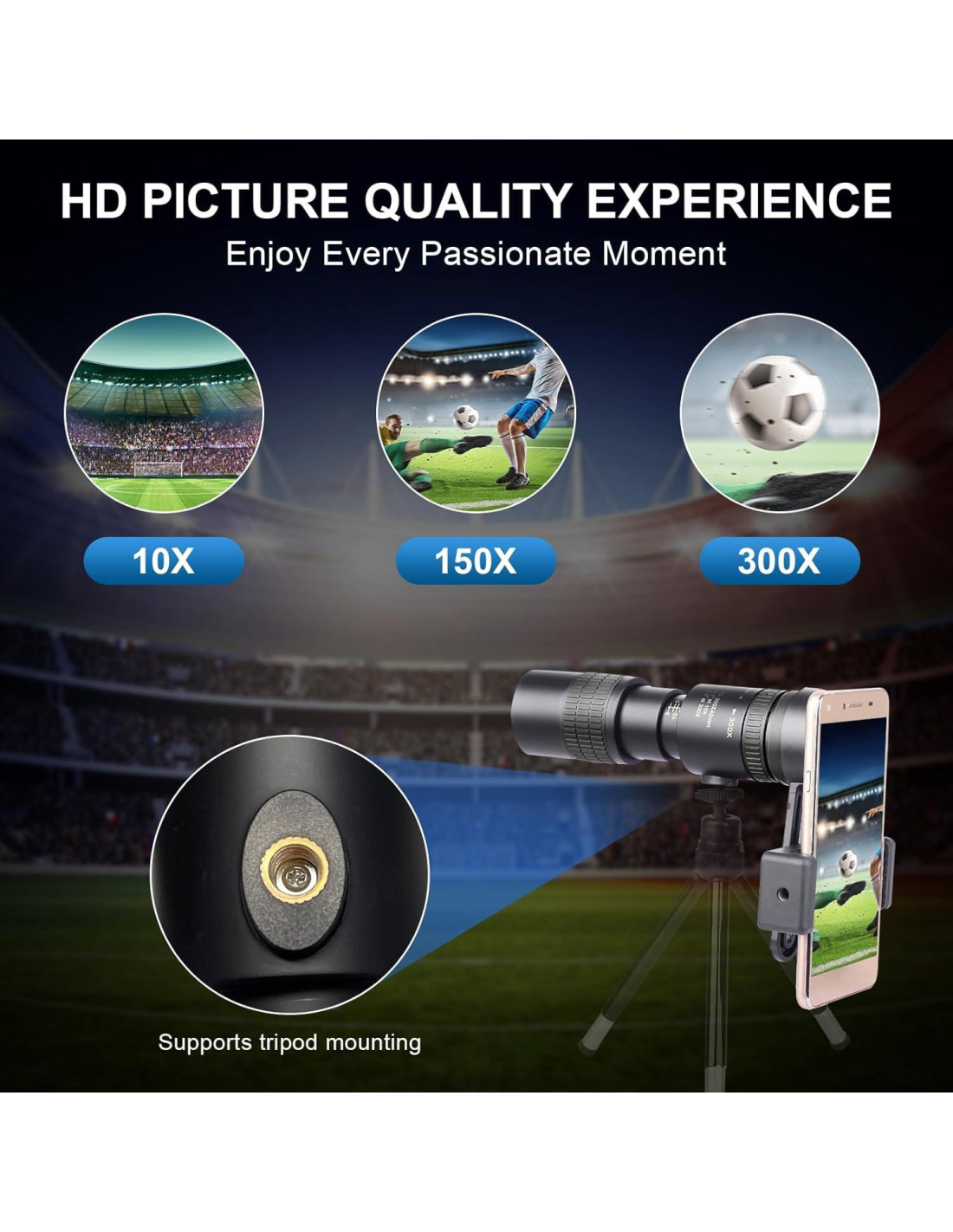 - Magnificación HD 300*40: Profundiza en los detalles con una magnificación HD de 300*40; este monocular no solo te acerca a escenas distantes, sino que las entrega en un detalle impecable.