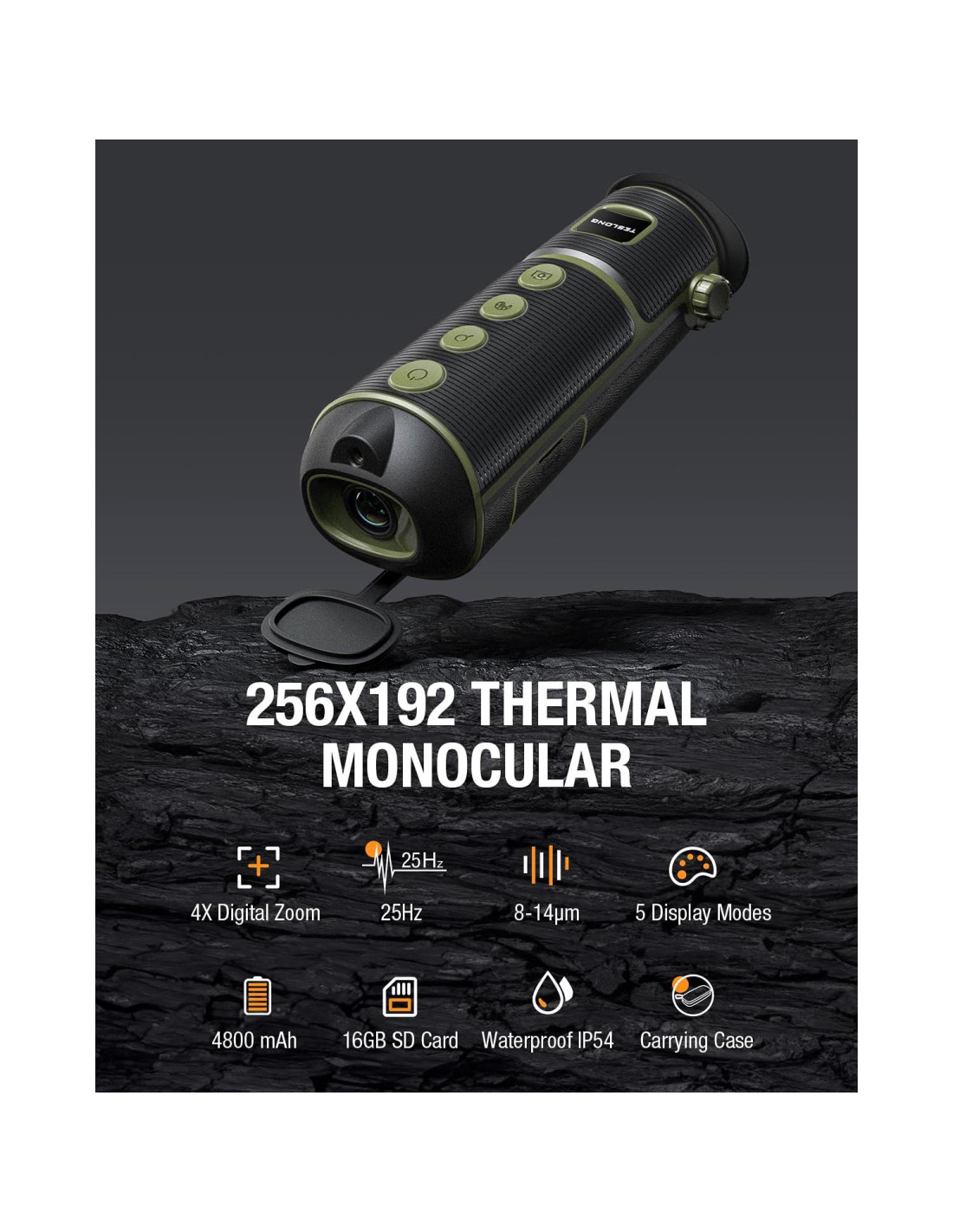 - [Monocular Térmico 256x192] Obtén imágenes térmicas claras para cazar con el monocular térmico de Teslong. Con un sensor de visión térmica de 256x192 y una pantalla LCOS de 720x540 en el monocular térmico para caza