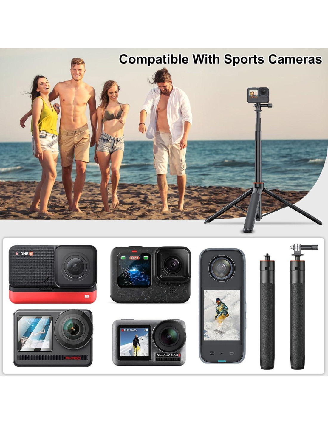 - [Construcción Duradera y Estable] El soporte para cámara deportiva está hecho de aleación de aluminio de alta calidad y presenta un diseño de tres patas con almohadillas de goma antideslizantes para máxima estabilidad.