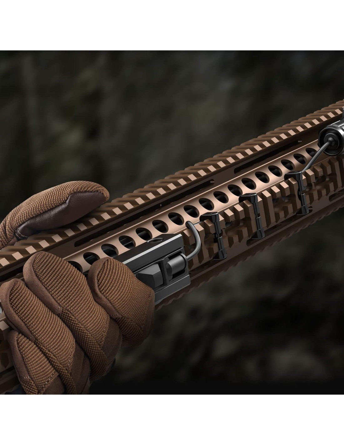 - Compatible con la plataforma de montaje Picatinny y cualquier luz táctica que funcione con un interruptor de presión;