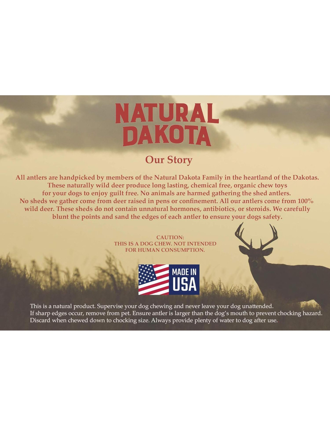 Los ciervos salvajes producen juguetes masticables seguros, duraderos, libres de químicos y orgánicos para que tus perros disfruten sin culpa. Cada masticable "Medio Pinta" mide aproximadamente 10-15 cm de largo con una pequeña circunferencia. Recomendamos este estilo para perros de 13.6 kg o menos. Debido al tamaño de este masticable, no recomendamos este estilo para perros más grandes con bocas grandes. Este masticable saludable y rico en nutrientes contiene nutrientes clave para tu perro como; calcio, zinc y hierro. Estos masticables no contienen hormonas adicionales, antibióticos ni esteroides y son 100% naturales. En Natural Dakota nos enorgullecemos de nuestros productos y nos preocupamos por todos los animales. Todos los cuernos de ciervo que recolectamos provienen de ciervos salvajes que no son criados en corrales o confinamientos. Podemos asegurarte que ningún animal es dañado durante ningún proceso. Todos los juguetes masticables están desbastados y lijados para garantizar la seguridad de tu perro. Los cuernos 100% naturales de Dakota son 100% fabricados en EE. UU. y son seleccionados a mano por miembros de la familia Natural Dakota en el corazón de los Dakotas.