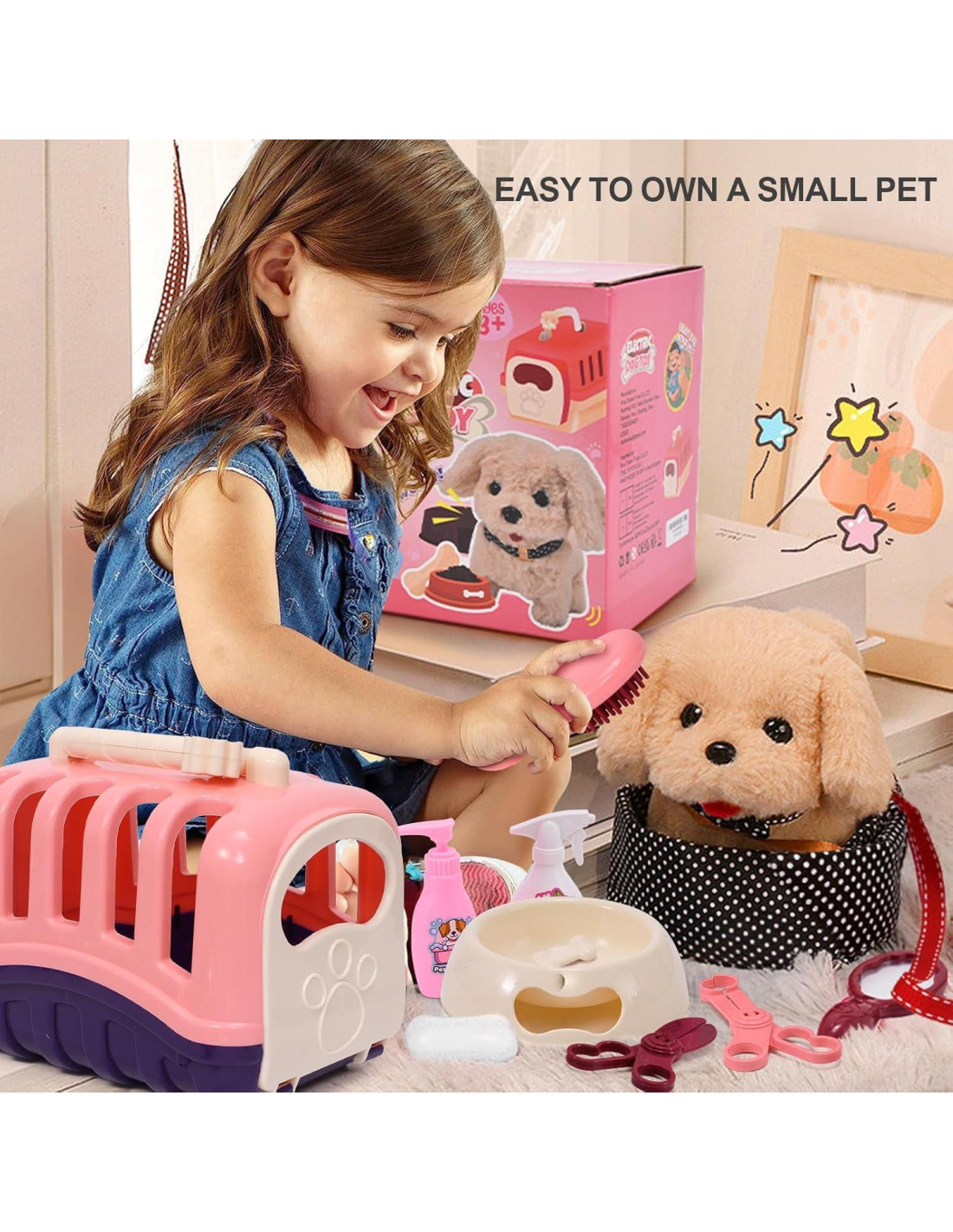 - [Juguetes para Perros Super Deluxe para Niños] ---Este conjunto de juguetes de juego de imitación viene con abundantes accesorios, incluyendo un perro de peluche eléctrico (baterías no incluidas), cuenco para perros, correa para perros, hueso, transportador de perros, perrera, solución de cuidado, champú, jabón, peine, espejo, etc. A los niños les gustaría pasar más tiempo observando y jugando con estos juguetes de perro, lo que brindará a sus hijos horas de diversión