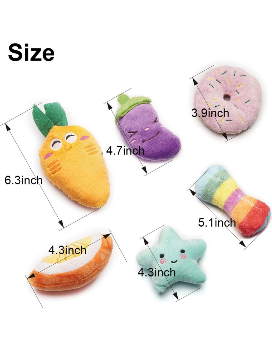 - [Lindo Aspecto Juguetes de Peluche con Squeaker] Paquete de 9-Estrella, Conejo, Zanahoria, Chile, Berenjena, Plátano, Dona, Naranja, Hueso. Variedad de juguetes, ¡teniendo uno diferente cada día!