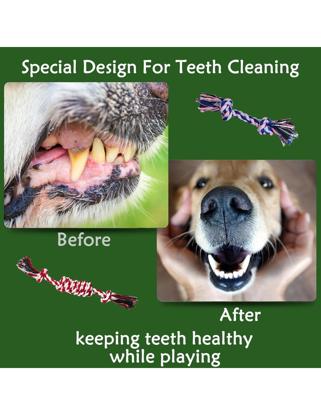 - Lo Que Obtienes: 3 pelotas de cuerda, 3 pelotas de cuerda con mango, 3 juguetes de cuerda en forma de caramelo y 6 juguetes de nudos de cuerda, los perritos siempre tendrán uno nuevo para disfrutar. Además, tienes nuestro servicio de atención al cliente 100% satisfecho. Cualquier problema, solo contáctanos y lo resolveremos.