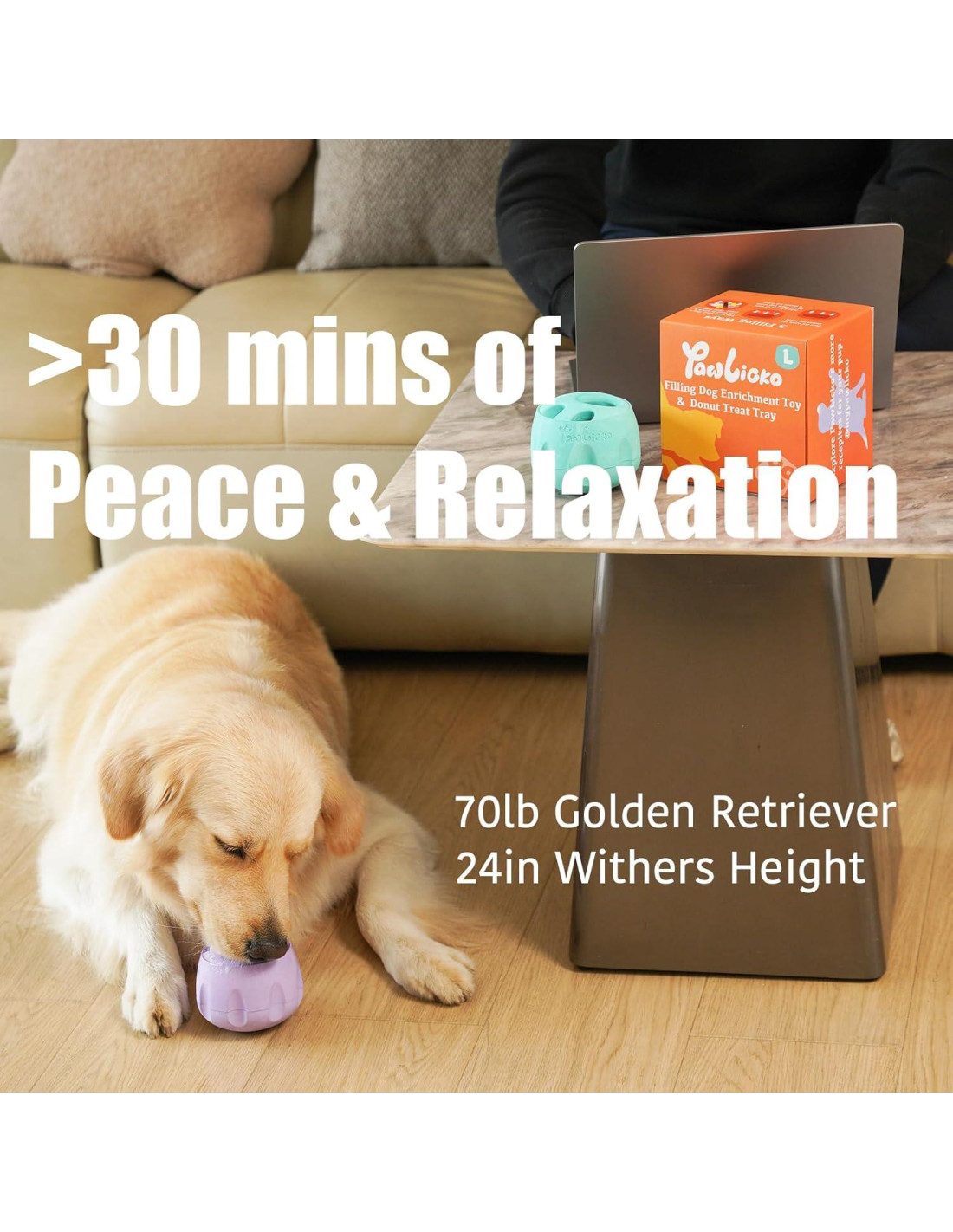 - Más Diversión Lamiendo con Duales Sensaciones. El diseño de golosina helada en forma de dona de PawLicko permite a los perros lamer desde múltiples ángulos e incluso a través de los agujeros para alcanzar la capa base de comida. Esto proporciona un rico sabor y estimulación visual, manteniendo a tu perro comprometido y entretenido durante mucho tiempo, ¡perfecto para combatir el aburrimiento!