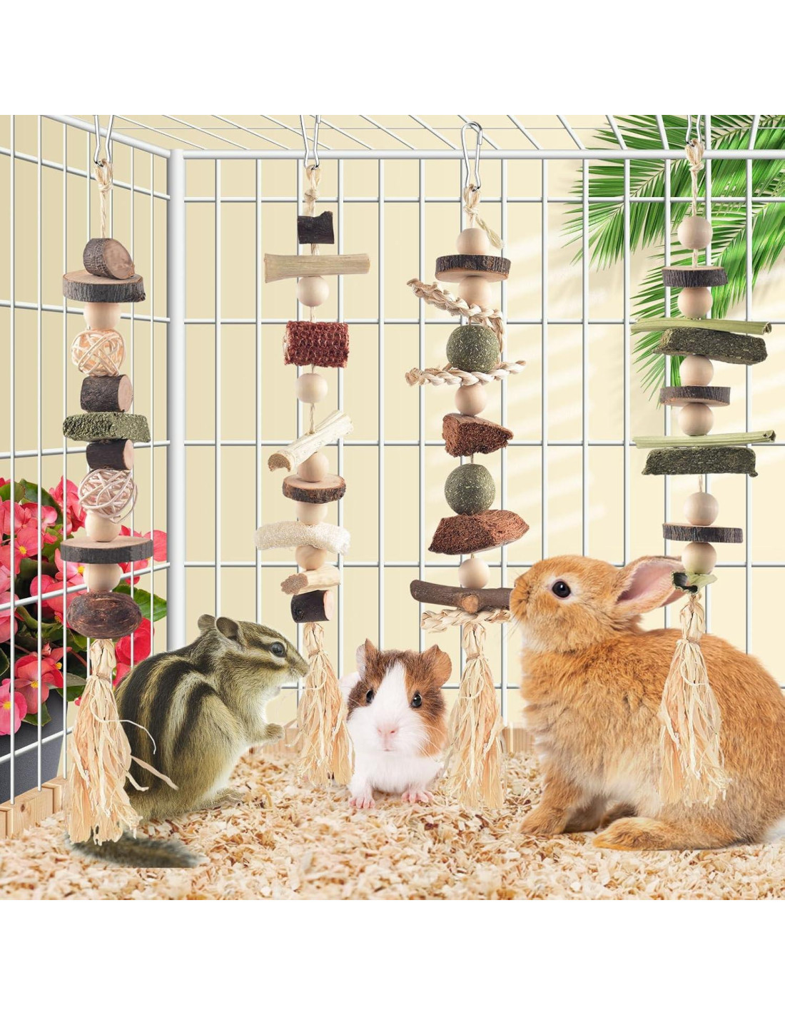 - Amplios Usos: Estos juguetes de masticar y golosinas para conejos se pueden colgar en jaulas con ganchos y son adecuados para conejos, conejitos, hámsters, cobayas, ardillas, chinchillas e incluso loros, proporcionando más diversión y entretenimiento para tus mascotas.