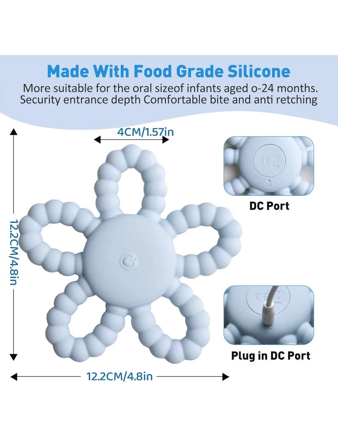 - Diseño de Apariencia de Flor-Fácil de Agarrar. Nuestro juguete mordedor vibrante tiene un diseño en forma de flor, hermosa apariencia para bebés y otros niños especiales, cada longitud de pétalo es de tamaño científico 3.3 cm, especialmente diseñado para el tamaño del bebé, entrada segura, profundidad cómoda, masticar sin quedarse atascado en la garganta. Antideslizante y fácil de agarrar sin caerse bordes suaves.