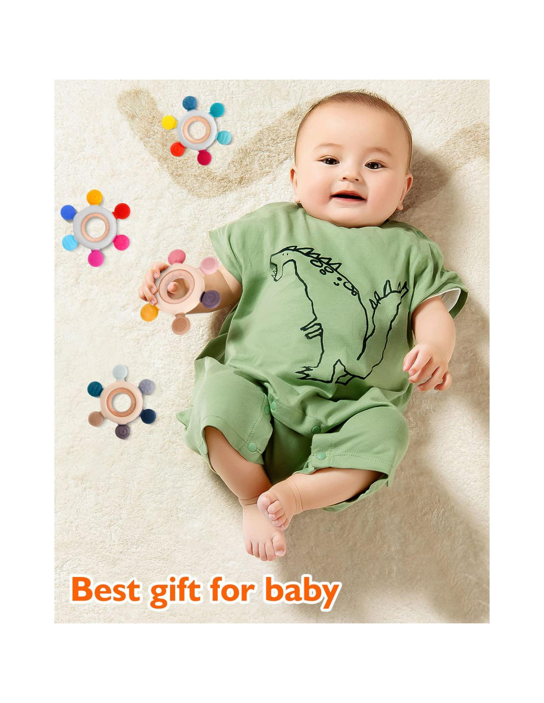 - MATERIAL SEGURO: Los juguetes de dentición para bebés están hechos de silicona de grado alimenticio 100% premium y haya natural, suaves y resistentes, no tóxicos, libres de FDA y BPA y ftalatos, completamente seguros para los bebés.