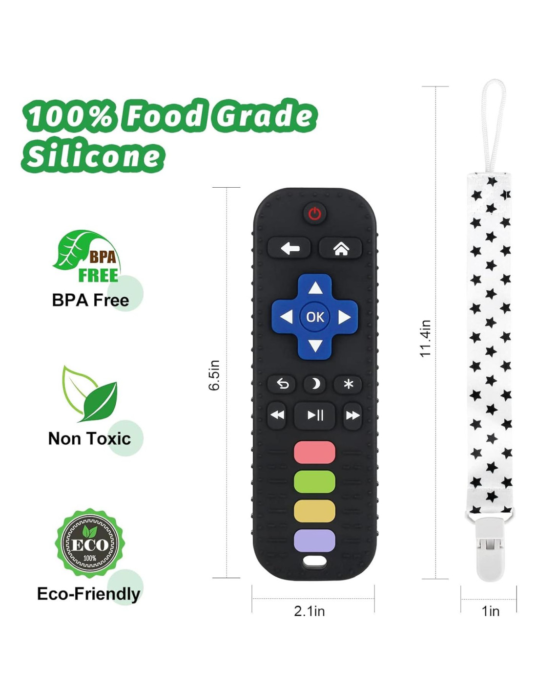 - Set de Mordedores de 3 Paquetes - Viene con 3 juguetes de control remoto en diferentes colores. Estos juguetes mordedores también ayudarán con el desarrollo sensorial de los bebés y les ayudarán a desarrollar flexibilidad en sus pequeñas manos.