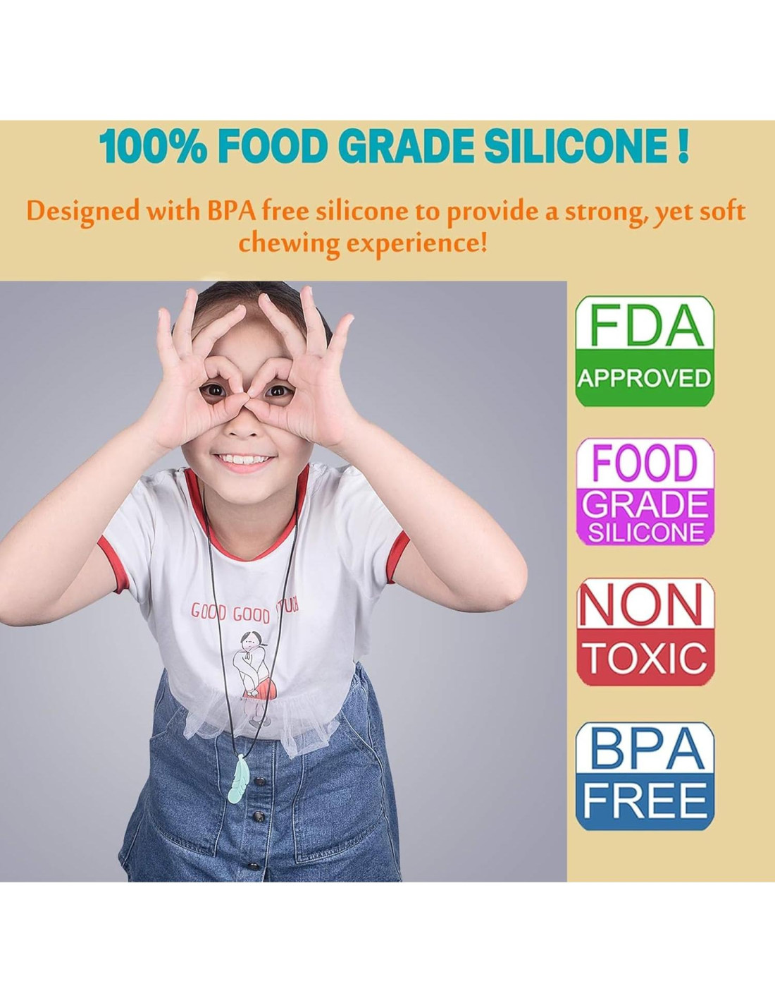 - DIVERSAS TEXTURAS PARA NECESIDADES SENSORIALES - El collar masticable de diseño de Hoja Grande y Pluma Pequeña es fácil de agarrar, proporciona diferentes entradas motoras orales y reduce la ansiedad. Y nuestro collar masticable está hecho de silicona resistente a desgarros diseñada específicamente para masticadores leves a moderados.