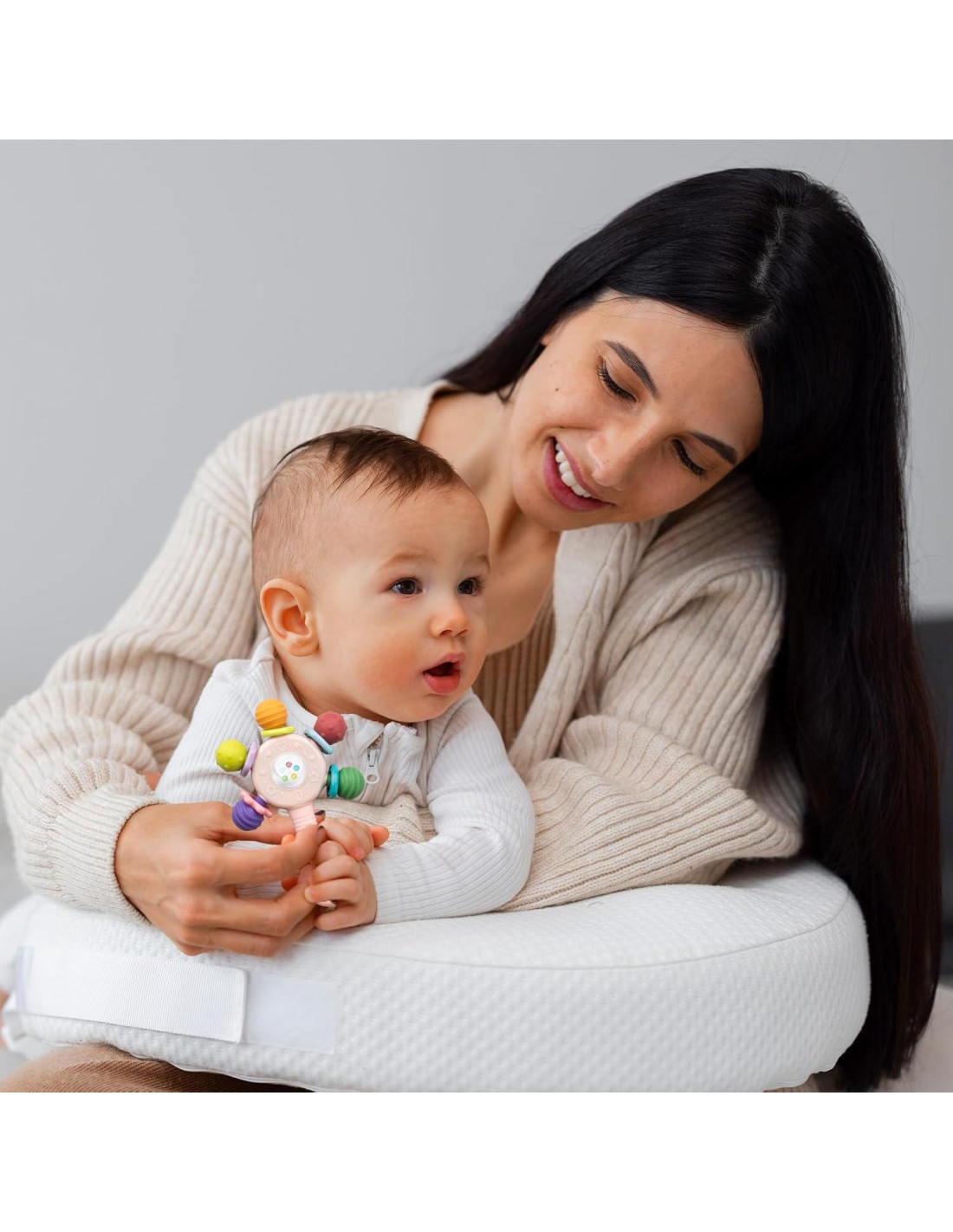 - CARACTERÍSTICAS DE DESARROLLO DOBLE: Combina superficies de dentición texturizadas para un masaje suave de encías con sonidos melódicos suaves. Mejora la estimulación sensorial oral y las habilidades de reconocimiento auditivo temprano