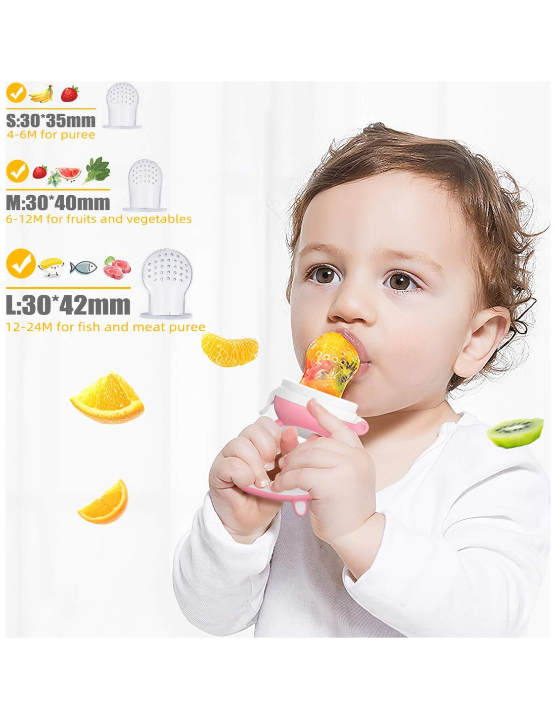 - Fácil limpieza y almacenamiento: El material utilizado hace que nuestros portadores de frutas para chupetes, mordedores y cepillos de dientes sean resistentes a las manchas; solo tienes que lavar con agua tibia y jabón o hervir para esterilizar