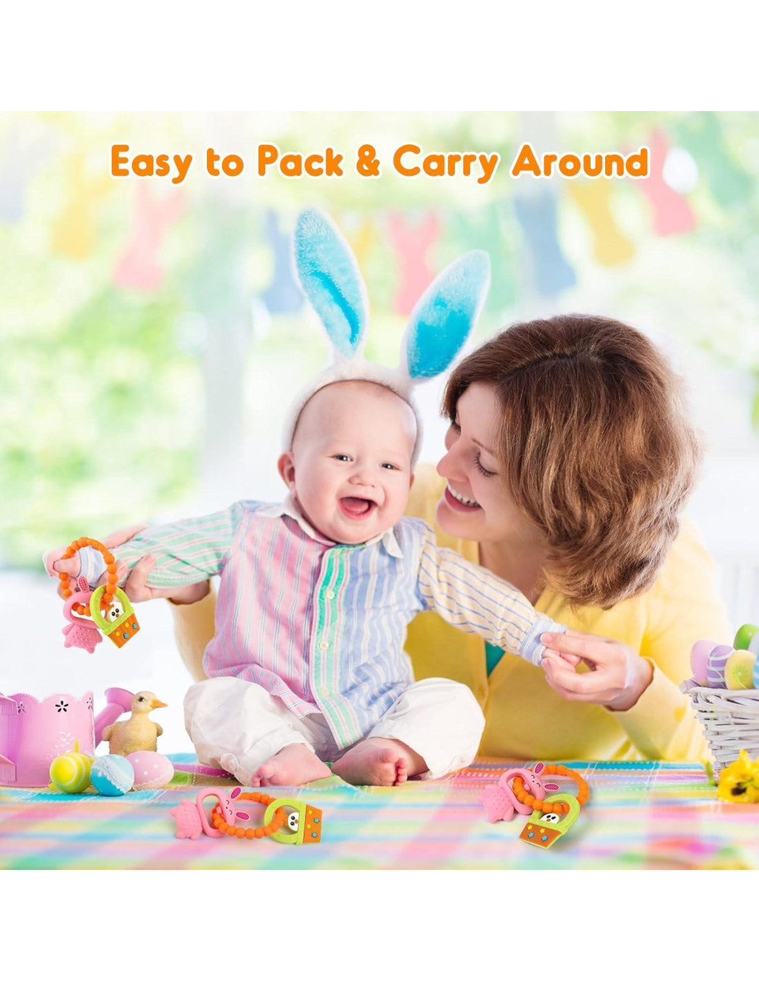 - [Diseñado para Calidad y Comodidad] : Nuestro Anillo de Dentición Delicia de Pascua es un testimonio de calidad y comodidad. La forma circular, complementada por los adorables colgantes temáticos de Pascua, crea una experiencia de dentición reconfortante para tu bebé. El material de silicona avanzado asegura una textura suave, y sus características de fácil limpieza lo convierten en una opción práctica para los padres. Celebra la Pascua con el Favor de amor y cuidado a través de este encantador anillo de dentición.