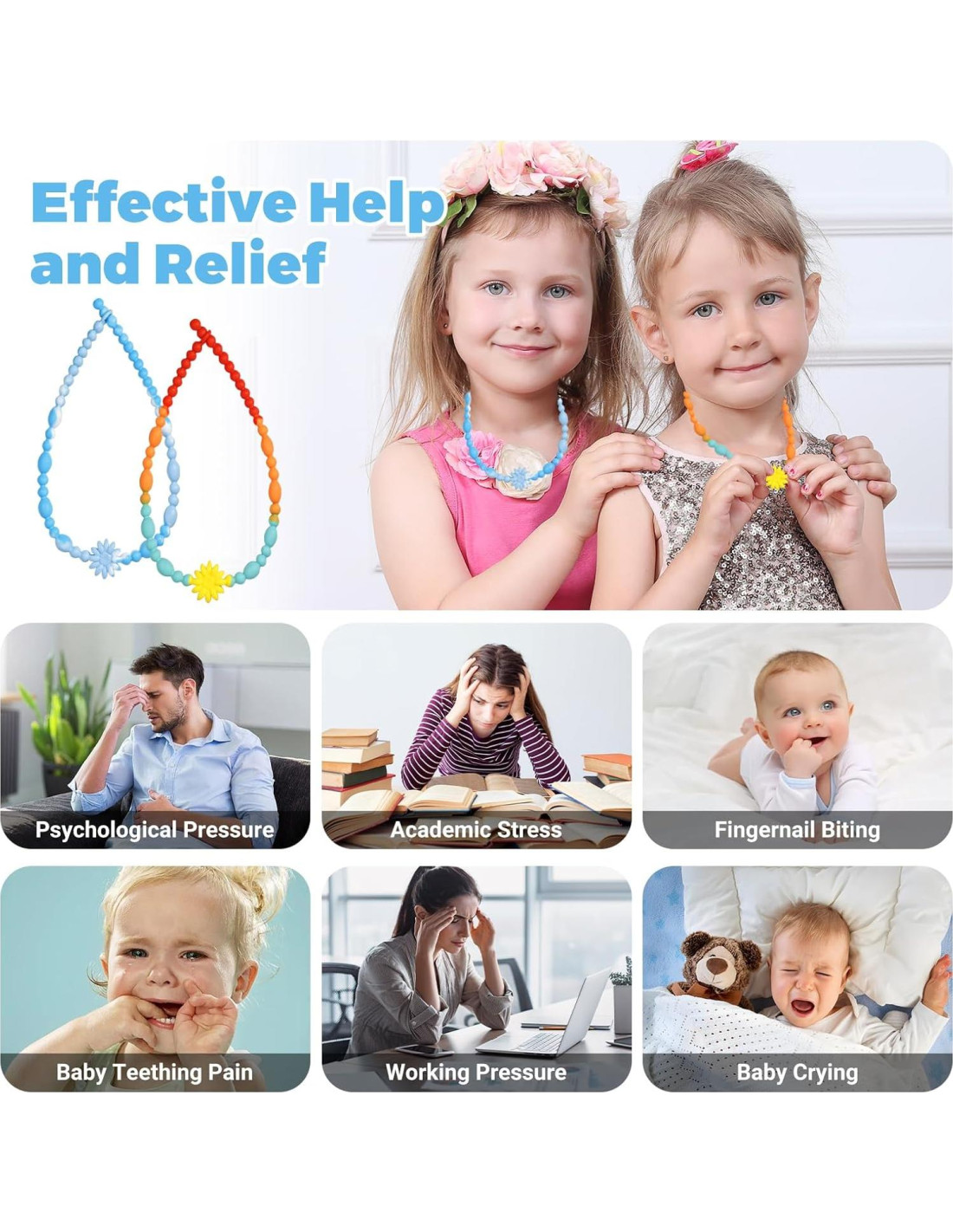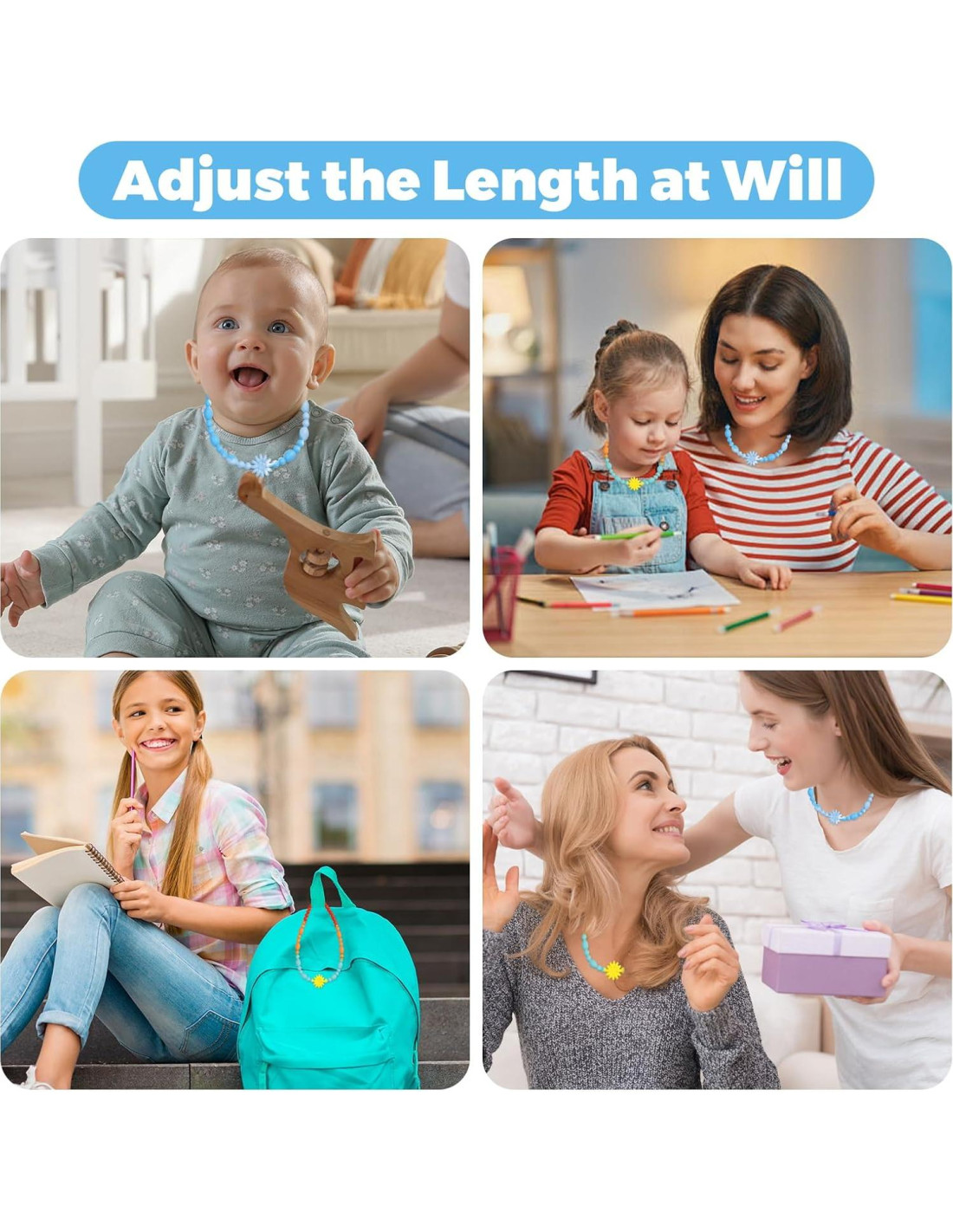 - [Longitud Ajustable para Todas las Edades] Longitud de collar personalizable que se adapta a bebés, niños y adultos. Ajuste para bebés en dentición o niños pequeños ansiosos que necesitan estimulación oral. Doble función como joyería masticable elegante para niños/niñas o juguetes mordedores discretos para alivio sensorial.