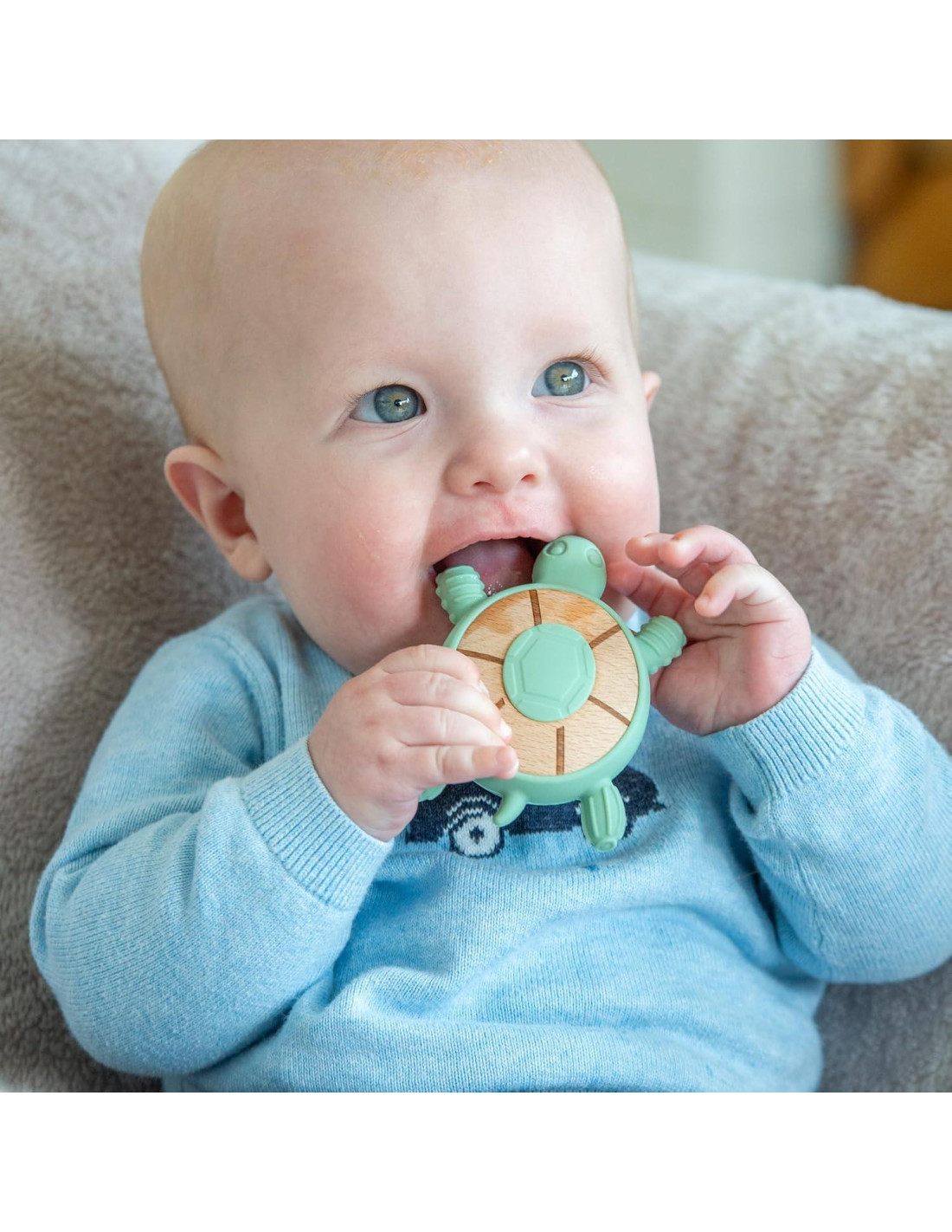 El Mordedor SiliSoft Turtle está diseñado para aliviar las encías doloridas mientras fomenta la exploración sensorial. Este encantador mordedor cuenta con patas estriadas hechas de silicona de grado alimenticio que proporcionan experiencias táctiles atractivas para las pequeñas manos. El cuerpo de madera de haya maciza añade calidez y carácter natural mientras ofrece una textura diferente para que los bebés la descubran. Con un diseño cuidadoso que permite retirar el centro de madera para una limpieza a fondo, este mordedor combina practicidad con aprendizaje lúdico. Tamaño: 21.1 cm L x 3.6 cm D.