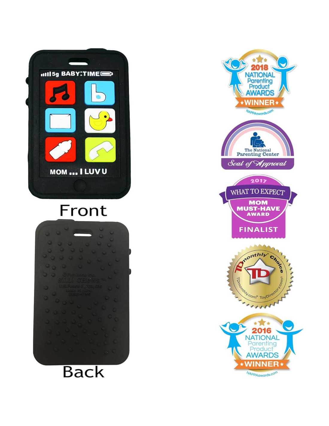 - CHUPETE DE BEBÉ GALARDONADO y CALMANTE DE ENCÍAS: los juguetes de dentición para bebés de silicona natural, hechos a mano y patentados de Silli Chews tienen el Sello de Aprobación del Centro Nacional de Crianza, Finalista del Premio Mom Must-Have, Ganador del Premio Nacional de Productos para Crianza y Ganador del Premio Tdmonthly Choice Toy.