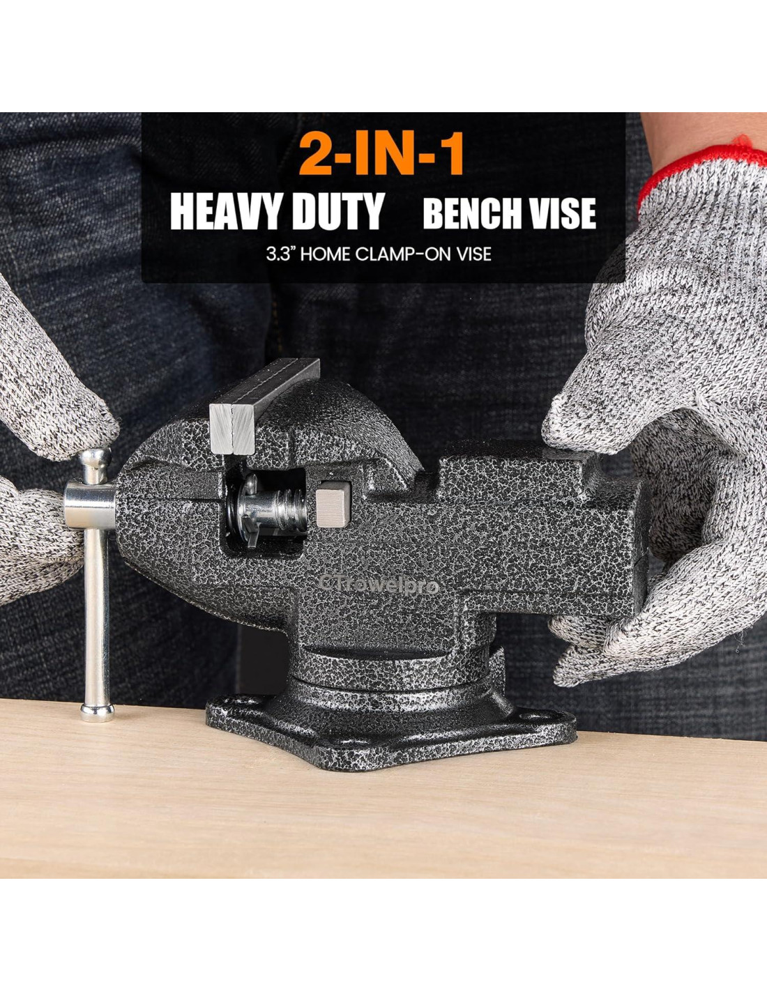 - Alta Calidad de Fundición, la morsa está hecha de acero fundido de alta calidad para una durabilidad general. Las mordazas están especialmente endurecidas y grabadas con una textura antideslizante para un excelente agarre, lo que le permite estar tranquilo y concentrarse en sus proyectos.