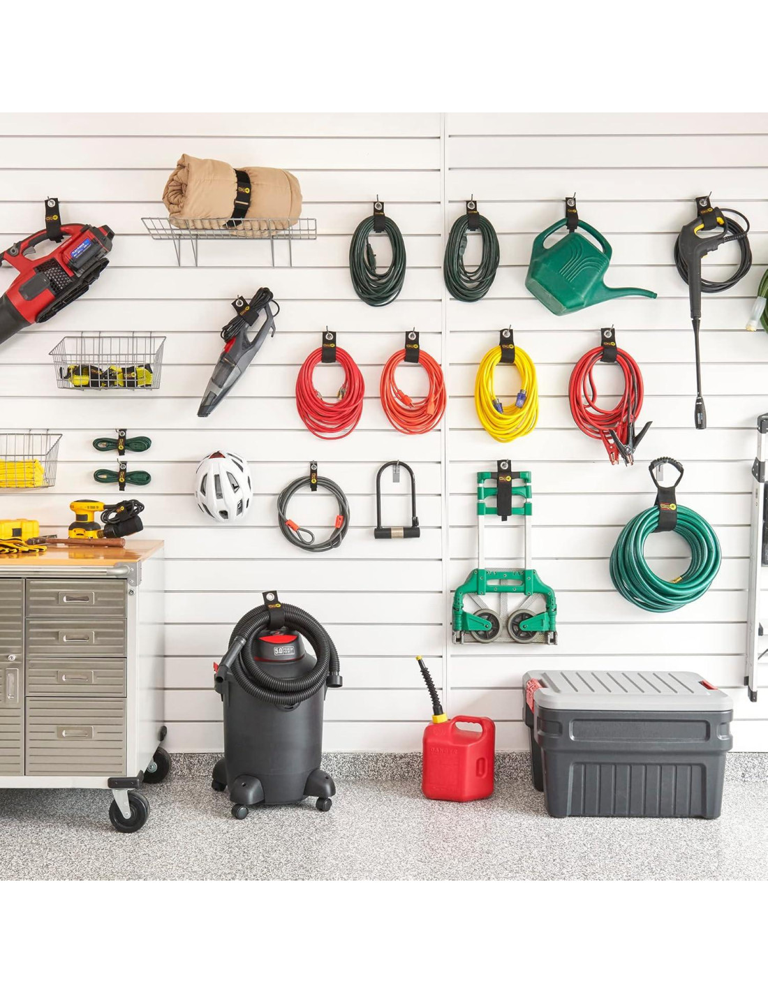 - CUELGALO: El ojal de acero inoxidable resistente a la corrosión facilita colgar cables de extensión, mangueras, cuerdas y mucho más. ¡Saca las cosas del suelo y organízate en el garaje, taller o cobertizo y alrededor del hogar, barco, camión o RV! Estas correas con ojal de alta resistencia se adaptan a los ganchos del sistema de almacenamiento del garaje y son los accesorios perfectos para el tablero de clavijas del garaje.