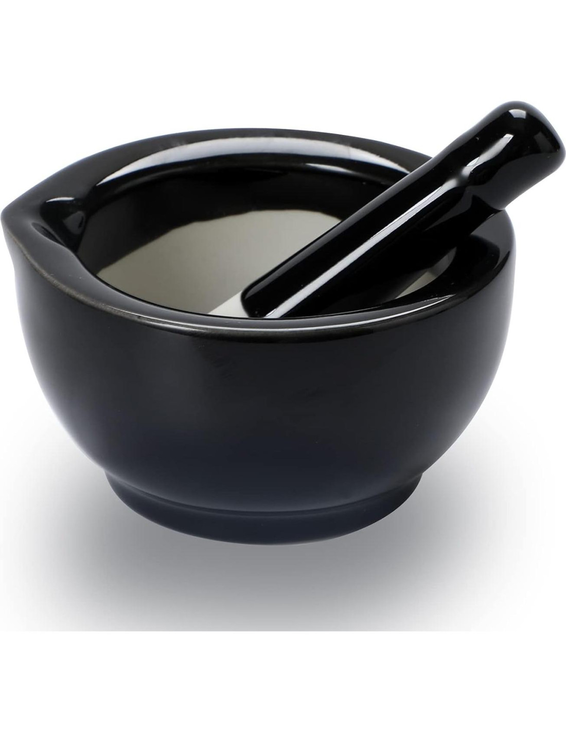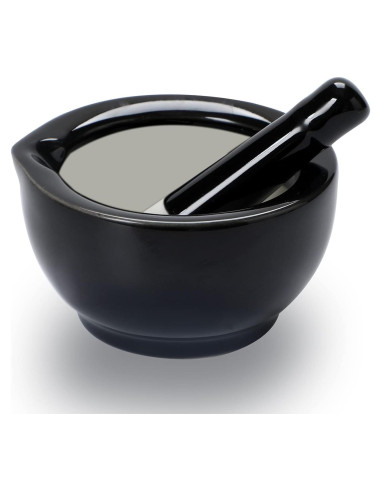 - Material cerámico - Este conjunto de mortero y mano de cerámica está hecho de cerámica. La superficie es lisa y translúcida, lo que facilita la limpieza. Se puede lavar en el lavavajillas.