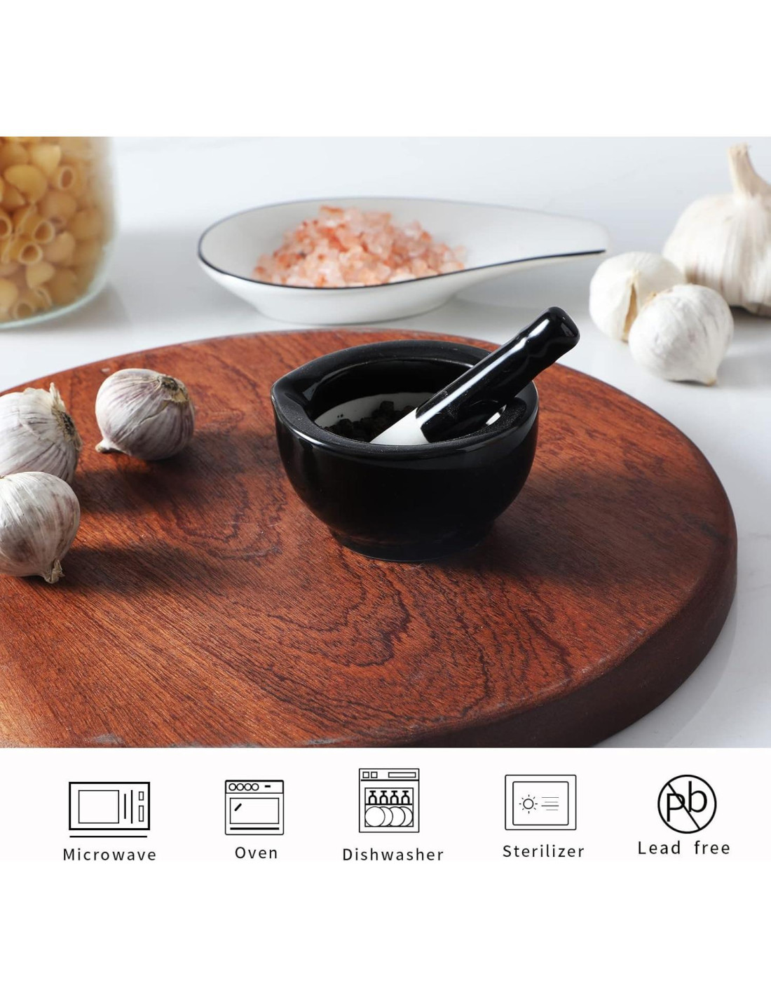- Uso multifuncional - El conjunto de mortero y mano de cerámica se puede utilizar para preparar hierbas, mantequilla, pimienta, ajo, etc.