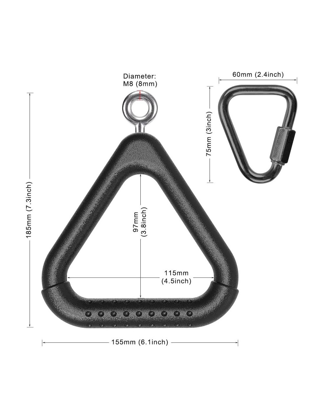 - [Fácil de Instalar]: Viene con dos mosquetones de seguridad triangulares que se adjuntan directamente a la cuerda suelta del Ninja Warrior, muy fácil de instalar. Se puede instalar en interiores y exteriores y se puede usar como un complemento o parte de reemplazo para el conjunto de columpios de su familia. A los niños les encantará este conjunto de accesorios para columpios.