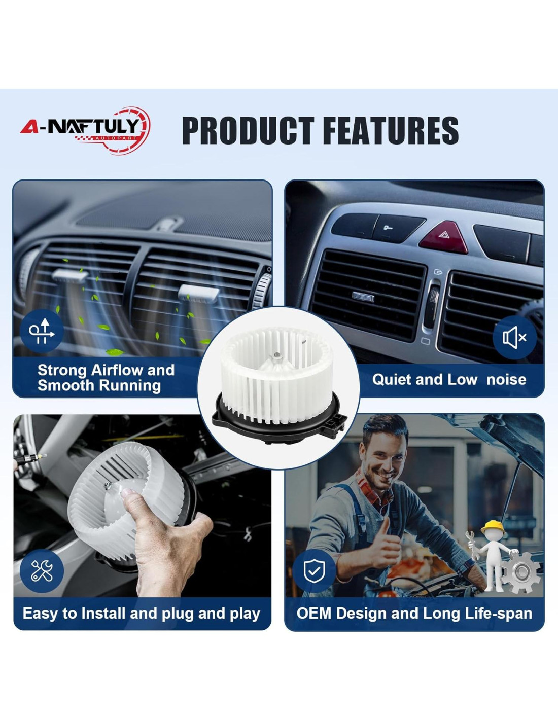 - [Función]: Reemplazo del ventilador del motor de soplador de AC - El motor de soplador de calefacción A/C es el ventilador que mueve aire caliente o frío a través de las rejillas del tablero según la configuración del sistema de aire acondicionado y la velocidad del ventilador seleccionada. Si su sistema HVAC está sufriendo de problemas como flujo de aire débil o nulo o hace ruidos fuertes de chirridos o rattling, entonces necesita reemplazar el motor de soplador de su automóvil.