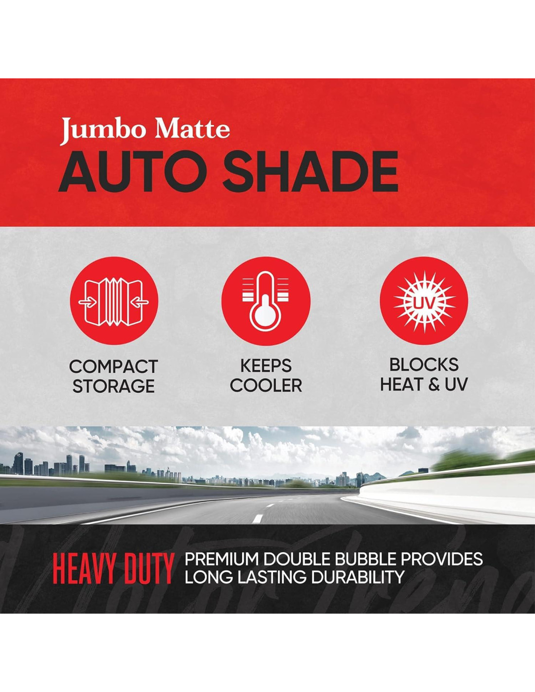- AJUSTE DE CALIDAD SUPERIOR: Con un tamaño de 66" de ancho x 27" de alto (167.64 x 68.58), esta sombra en acordeón de tamaño jumbo fue hecha para adaptarse universalmente a su coche, camión, SUV o pickup. También diseñada pensando en las familias, asegurando un ajuste perfecto para la protección de la sombra del parabrisas de la minivan. Hecha universalmente para la mayoría de vehículos personales y se adapta al parabrisas utilizando el espejo retrovisor como soporte. Los bordes cónicos de esta sombra de coche en acordeón permiten un ajuste más ceñido.