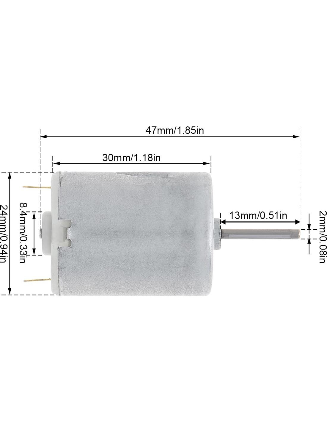 Características: - Menos calor, bajo consumo, rendimiento estable. - Gran par, rendimiento estable y alta eficiencia. - Adecuado para todo tipo de extractores de jugo eléctricos, bombas de agua, cepillos de dientes eléctricos, juguetes, etc. - Voltaje: 6-24V; Potencia de Salida: 1-12W; Rango de Operación: DC 6-24V - Velocidad Sin Carga: 6000RPM(6V), 10000RPM(12V), 19800RPM(24V) Número de Modelo: R280 Material: Metal Voltaje: 6-24V Velocidad Sin Carga: 6000-19800RPM Potencia de Salida: 1-12W Tipo: Motor Micro Tipo de Producto: Motor DC con Escobillas Voltaje Nominal: DC 12V Rango de Operación: DC 6-24V Velocidad Sin Carga: 6000RPM(6V), 10000RPM(12V), 19800RPM(24V) Eficiencia: 56-62% Peso del Producto: 38 G (1.07 Onzas) Paquete Incluye: 1 x Motor DC