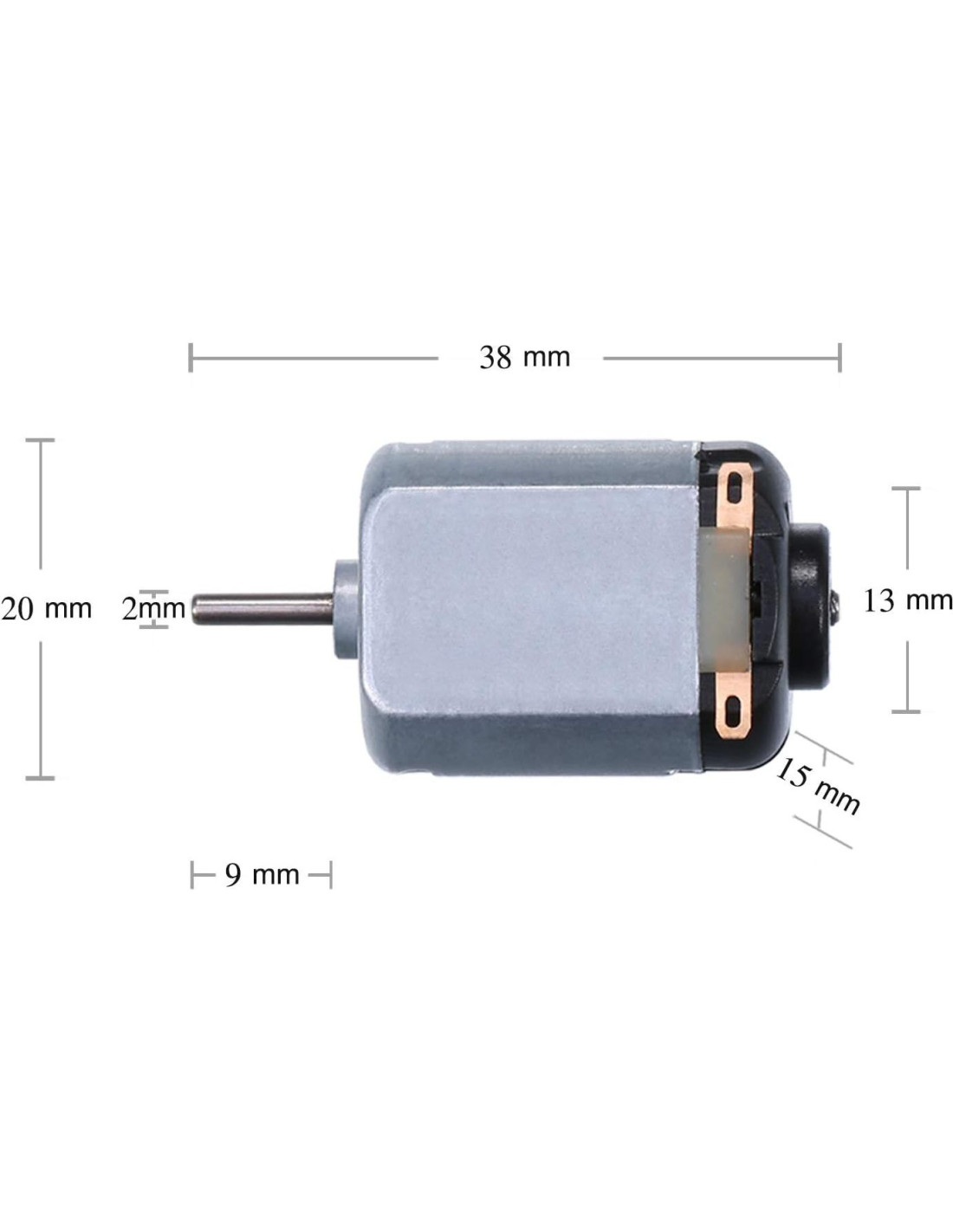 Fácil de instalar y desmontar, adecuado para muchos proyectos en casa y en su aula. Ideal para juguetes robóticos, proyectos de laboratorio estudiantil, clase STEM, coches a motor, clase de ingeniería y más. Consejos: Tamaño mini, fácil de instalar y guardar, colóquelos en una bolsa sellada cuando no estén en uso para evitar la oxidación por humedad. Nota: Piezas pequeñas, manténgalas alejadas de niños menores de 3 años para evitar asfixia. Características: Voltaje nominal: CC 3V. Velocidad nominal: 15000 RPM. Tamaño del motor: 38 x 20 x 15 mm / 1.5" x 0.8" x 0.6". Diámetro del eje: 2 mm / 0.08". Longitud del eje: 10 mm / 0.4". Material: metal. El paquete incluye: 12 x motor de corriente continua 3V. Servicio al cliente: Si tiene alguna pregunta sobre nuestro producto, haga clic en el botón 'contactar al vendedor' en su cuenta de Amazon para enviarnos un correo electrónico, le responderemos tan pronto como podamos.