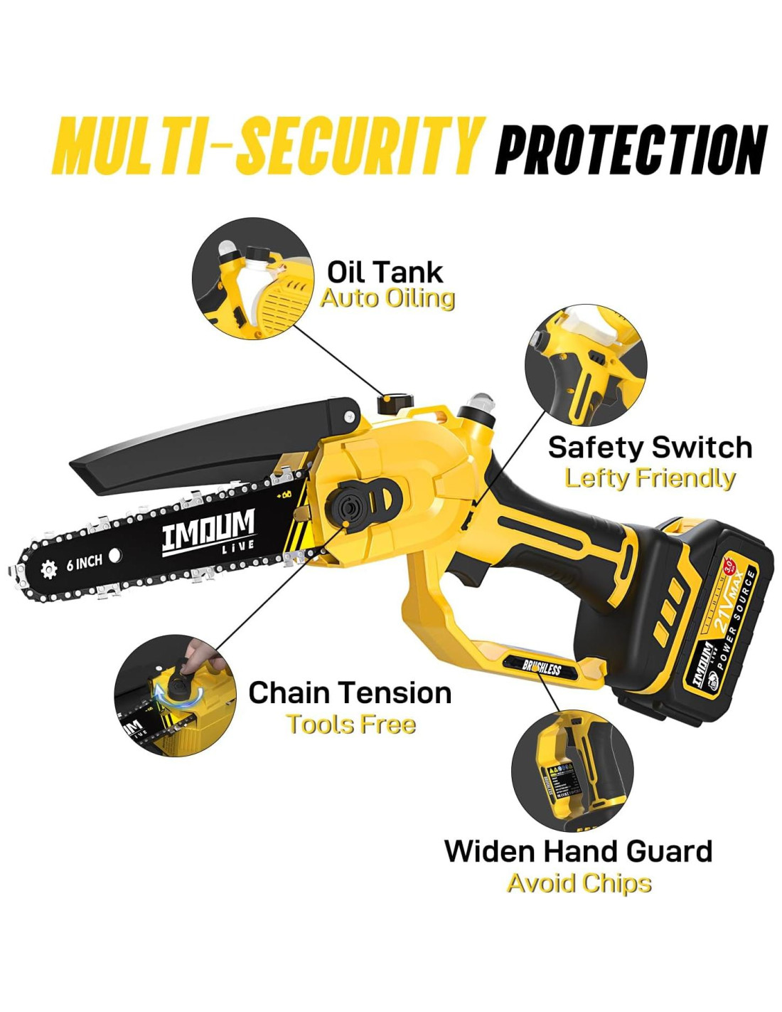 - De mano y compacto: con su avanzado diseño ergonómico, la pequeña motosierra es fácil de manejar y maniobrar, particularmente amigable para personas mayores, mujeres y usuarios zurdos