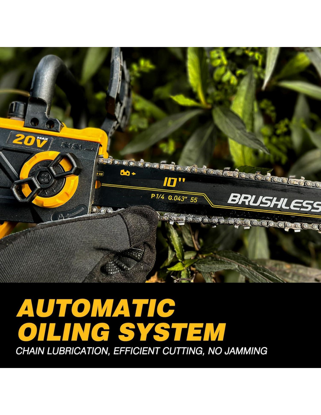 - Lubricación Automática y Pantalla de Energía: Disfruta de cortes más suaves y una vida útil más larga de la cadena con la lubricación automática instantánea de nuestra motosierra. El tanque de aceite transparente hace que el mantenimiento sea sin esfuerzo, mientras que la pantalla de energía inteligente elimina las preocupaciones sobre la batería, manteniéndote en control para una operación más inteligente y sin estrés.