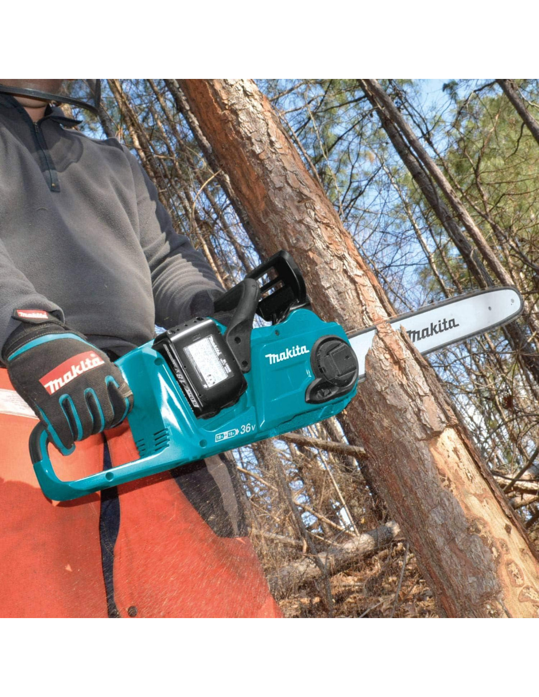 Los paisajistas y contratistas están exigiendo más alternativas inalámbricas a los equipos de potencia exterior a gasolina. Makita está satisfaciendo la demanda con una línea en expansión de OPE inalámbrico, incluyendo la motosierra sin escobillas de 16" LXT 36V (18V X2) (XCU04CM). Con cero emisiones, menor ruido y considerablemente menos mantenimiento, el XCU04CM es una solución bienvenida para aplicaciones de corte y recorte. Está alimentado por dos baterías de 18V LXT 4.0Ah para máxima potencia, velocidad y tiempo de funcionamiento. Y con el eficiente motor sin escobillas de rotor exterior de Makita con sistema de transmisión directa, los usuarios obtienen alta eficiencia de potencia que es equivalente a una motosierra de gasolina de 32cc. El XCU04CM tiene una barra guía de 16" (40.64 cm) y el motor del sistema de transmisión directa del motor sin escobillas de rotor exterior construido por Makita con velocidad variable entrega 0-3,940 FPM (pies por minuto) (0-1,198.4 m/min) para aumentar la velocidad de corte. Tiene cero emisiones y mantenimiento reducido: no hay aceite de motor que cambiar, no hay bujía que reemplazar, y no hay filtro de aire o silenciador que limpiar. Y no hay necesidad de drenar el combustible para el almacenamiento. Simplemente recógelo, carga dos baterías de 18V LXT de iones de litio, y la motosierra está lista para usar. Las características de conveniencia incluyen ajustes de cadena sin herramientas, un guardamanos delantero diseñado para accionar el freno de cadena cuando se activa, un freno eléctrico para máxima productividad, y más. Es parte del sistema 18V LXT en expansión de Makita, el sistema de herramientas inalámbricas más grande del mundo alimentado por baterías de iones de litio de estilo deslizante de 18V. Las baterías de iones de litio Makita 18V LXT tienen los tiempos de carga más rápidos en sus categorías, por lo que pasan más tiempo trabajando y menos tiempo sentadas en el cargador. Para mejorar el rendimiento de la herramienta y extender la vida de la batería, Makita creó Star Protection Computer Controls. Star Protection es una tecnología de comunicación que permite que la herramienta y la batería equipadas con Star Protection intercambien datos en tiempo real y monitoreen las condiciones durante el uso para proteger contra sobrecargas, sobredescargas y sobrecalentamiento. Para mayor versatilidad, la herramienta también puede ser alimentada por baterías de iones de litio Makita 18V LXT con el símbolo de estrella en la batería que indica Star Protection en su interior.