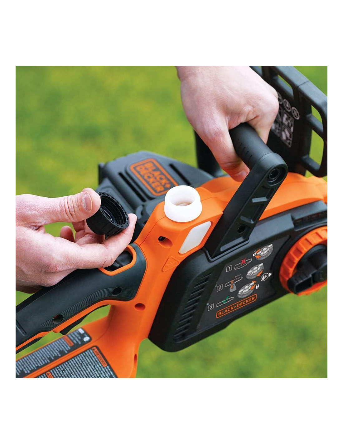 Descripción del producto Disfrutas hacer trabajos alrededor de la casa, dentro y fuera. Cuando ves que uno de tus árboles tiene una rama que parece que va a caer, tomas el asunto en tus propias manos. Agarrando la motosierra inalámbrica Black and Decker de 20V Max, sabes que tendrás esto resuelto en un abrir y cerrar de ojos. La barra y cadena Oregon de 10" (25,4 cm) de bajo retroceso proporciona cortes suaves y rápidos. El cargador de batería de litio de 20V max de 2.0 Ah cargará la batería en 5 horas, proporcionando horas de uso. El mango envolvente proporciona mayor control y comodidad. Historia de la marca de Black & Decker