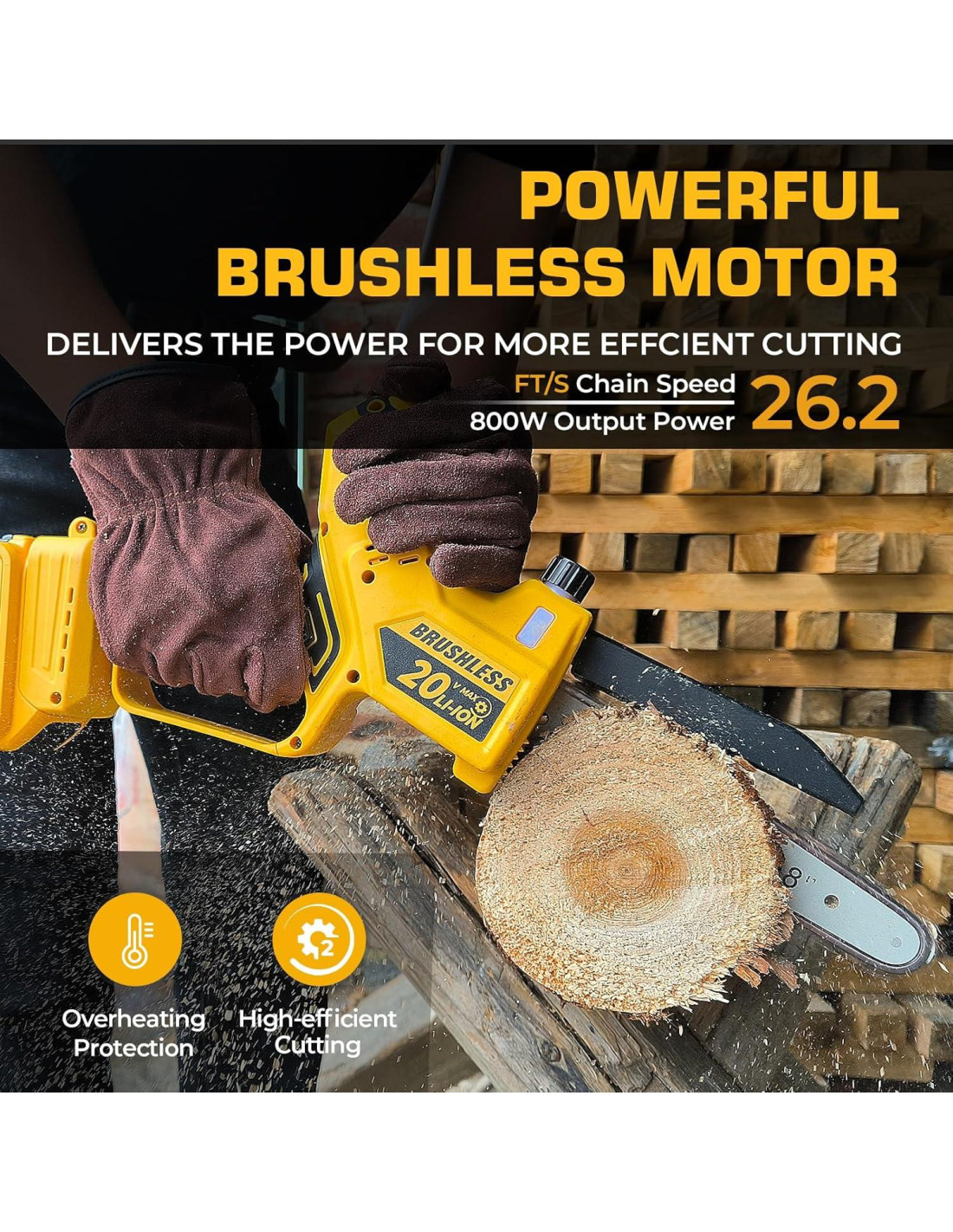- MOTOR SIN ESCOBILLAS DE ALTA EFICIENCIA: La motosierra de poda está equipada con un potente motor sin escobillas de 800W. El motor sin escobillas de alta eficiencia proporciona la potencia para un corte más eficiente y maximiza el tiempo de funcionamiento y la vida del motor.