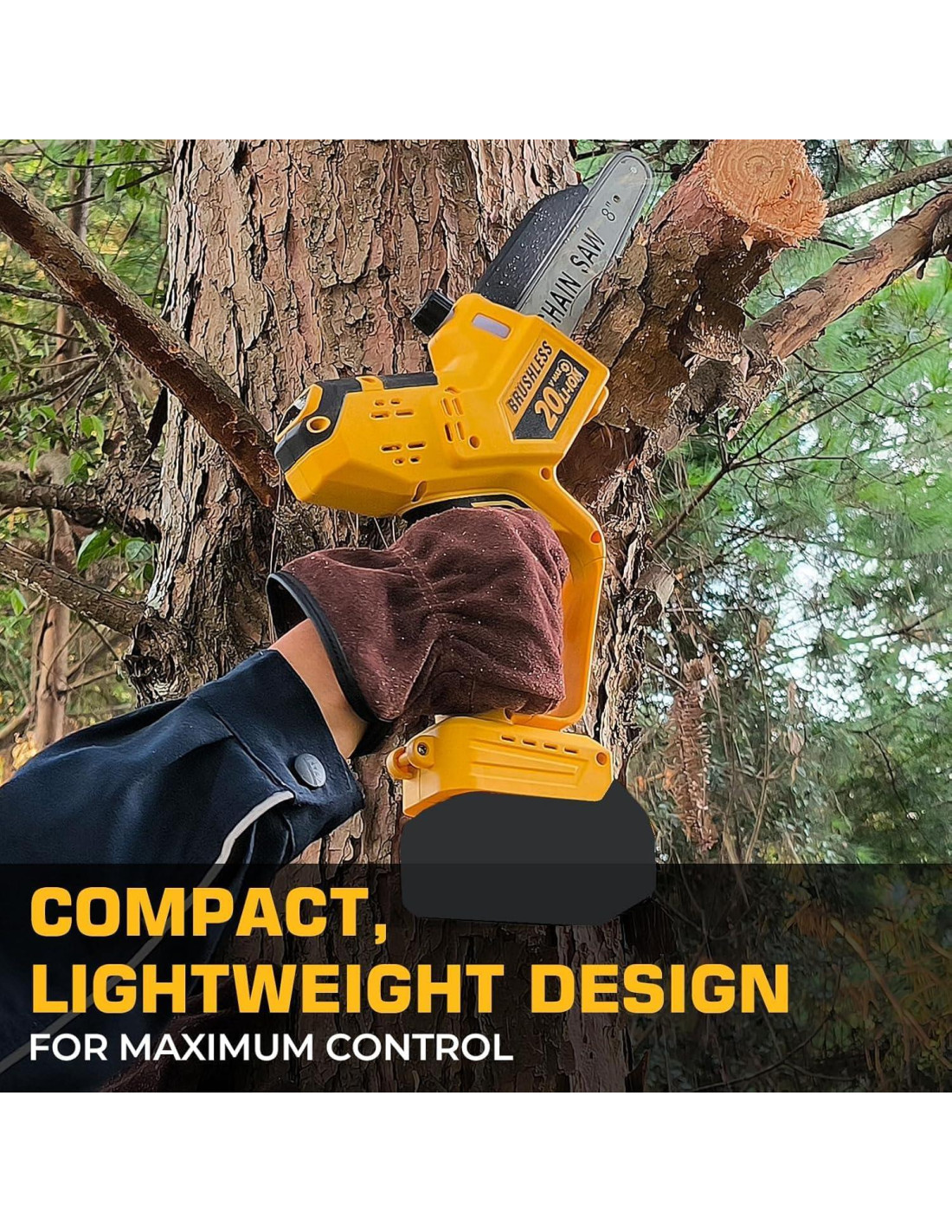 - DISEÑO COMPACTO PARA MEJOR MANEJO: Con un peso de solo 2.8 lbs (1.27 kg) (solo herramienta), la motosierra de poda es un 61% más ligera y 3 veces más compacta, diseñada para reducir la fatiga mientras cortas, recortas y podas. Úsala para recortar ramas de árboles caídos, cortar paquetes de madera o ramas, y gestionar matorrales gruesos o necesidades diarias de poda. El diseño compacto permite un fácil acceso a espacios reducidos.