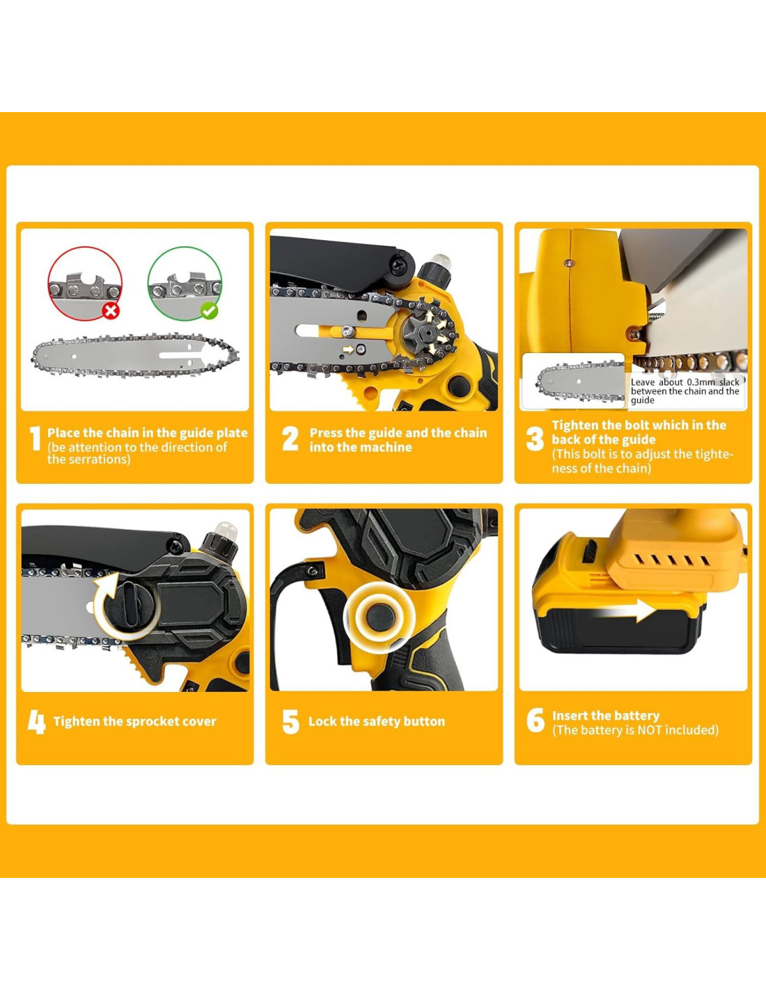 - MOTOSIERRA MINI ALIMENTADA POR BATERÍA: Esta mini motosierra de 6 pulgadas sin cable es compatible con la batería Dewalt 20V MAX, como DCB201 DCB202 DCB203 DCB204 DCB205 DCB206. LA BATERÍA NO ESTÁ INCLUIDA. No es una motosierra de marca oficial Dewalt, compatible con batería Dewalt de 18-21v (solo herramienta, ¡batería NO incluida!)