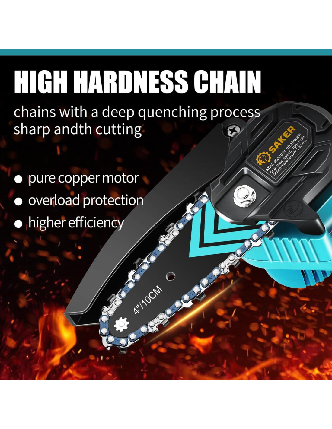 - [SISTEMA DINÁMICO FUERTE] - La Sierra de Cadena Mini Saker adapta una cadena guía de alta calidad que ha pasado por un proceso de temple profundo para asegurar un corte suave. Además, se utiliza un motor de cobre puro, que es muy potente. La eficiencia de corte es más alta y rápida.