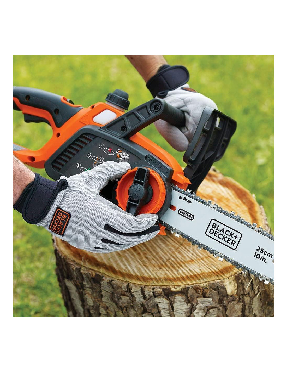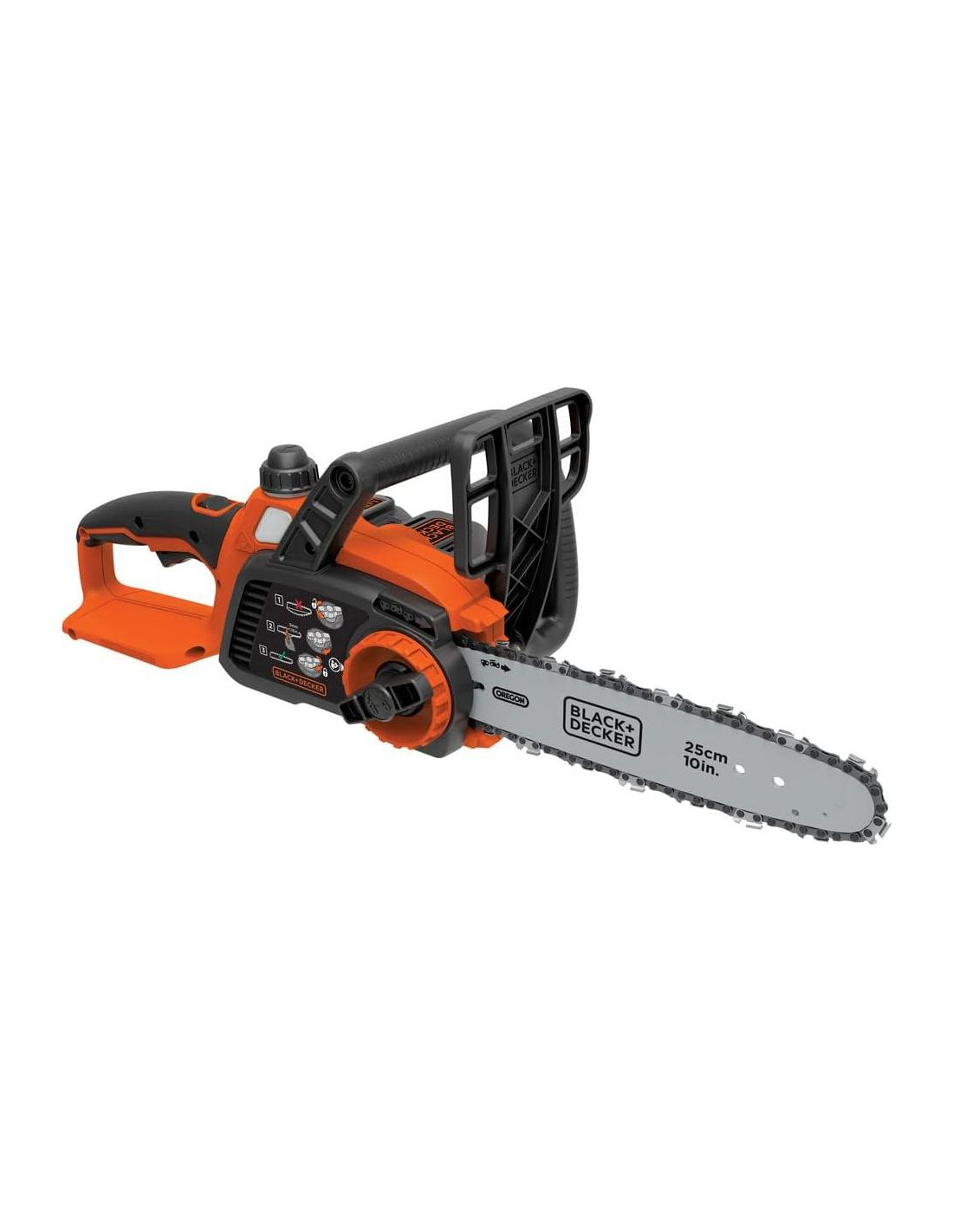 Descripción del producto Disfrutas hacer trabajos alrededor de la casa, dentro y fuera. Cuando ves que uno de tus árboles tiene una rama que parece que va a caer, tomas el asunto en tus propias manos. Agarrando la motosierra inalámbrica Black and Decker de 20V Max, sabes que tendrás esto resuelto en un abrir y cerrar de ojos. La barra y cadena Oregon de bajo retroceso de 10" (25,4 cm) proporciona cortes suaves y rápidos. El cargador de batería de litio de 20V max de 2.0 Ah cargará la batería en 5 horas, proporcionando horas de uso. El mango envolvente proporciona mayor control y comodidad. Historia de la marca por Black & Decker
