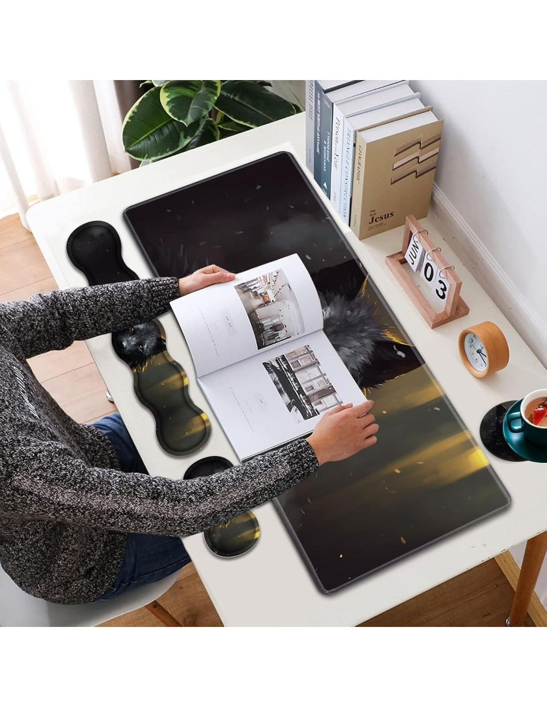 - [Juego de alfombrillas para ratón 4 en 1] Alfombrilla XXL grande de 31.5 x 11.8 pulgadas (80 cm x 30 cm), reposamuñecas para teclado de 17.33 x 3.7 pulgadas (44 cm x 9.4 cm), reposamuñecas de 6.8 x 3.7 pulgadas (17.3 cm x 9.4 cm), reposamuñecas de espuma viscoelástica de 0.98 pulgadas (2.5 cm), posavasos de 3.93 x 3.93 pulgadas (10 cm x 10 cm). Las alfombrillas de mesa son lo suficientemente grandes para proporcionar suficiente espacio para juegos o trabajo de oficina y mantener tu escritorio limpio y ordenado.