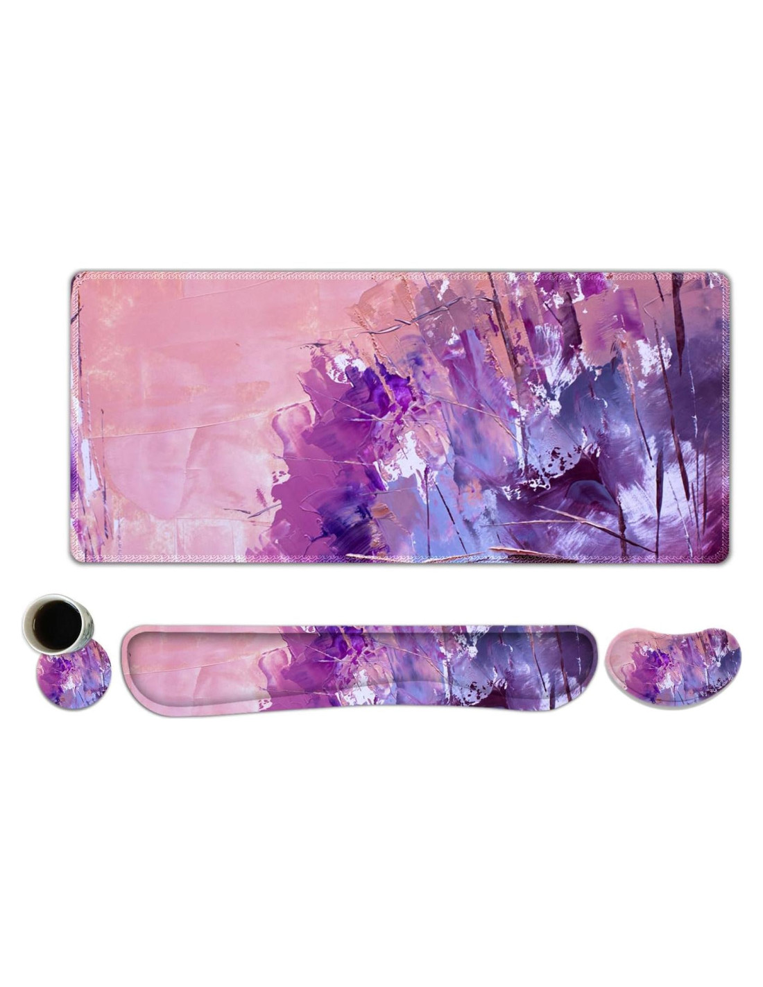 - [Tamaño Extendida 4 en 1]: La alfombrilla de ratón XXL grande (90 x 40 x 0.25 cm), soporte para muñeca de teclado (44 x 8 x 2.5 cm), soporte para muñeca de ratón (15 x 10 x 2.5 cm), y el posavasos mide (10 cm), hay suficiente espacio para moverse y también puede acomodar un teclado y ratón de tamaño completo, proporcionando mucho espacio para juegos profesionales o trabajo de oficina!