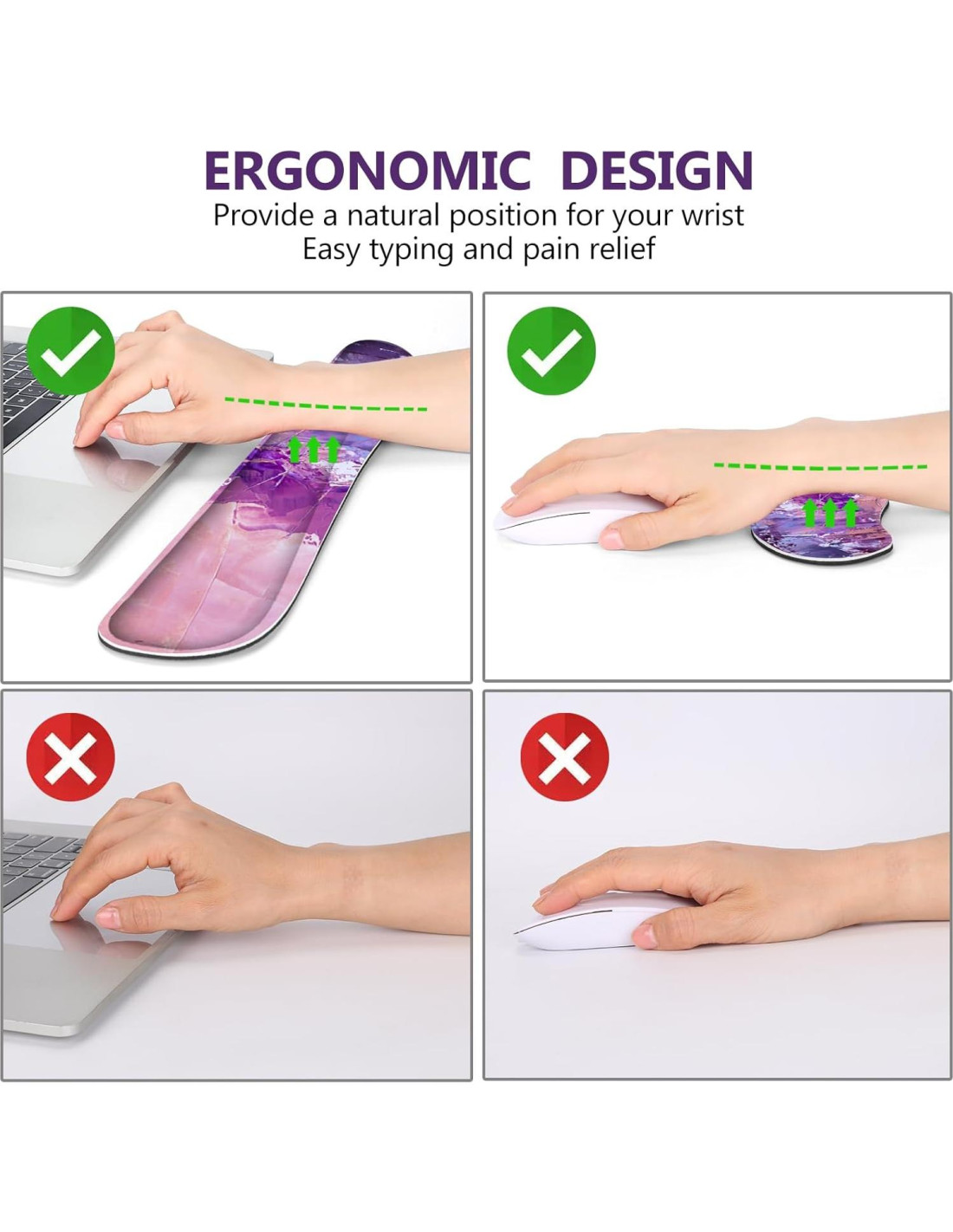 - [Calidad Sobresaliente]: Con espuma viscoelástica cómoda y material transpirable para las almohadillas. El soporte para muñeca de teclado y la almohadilla para muñeca están hechos de neopreno acolchado. Y la parte acolchada de espuma viscoelástica se recuperará lentamente cuando tu mano la deje, no es fácil que pierda su forma.