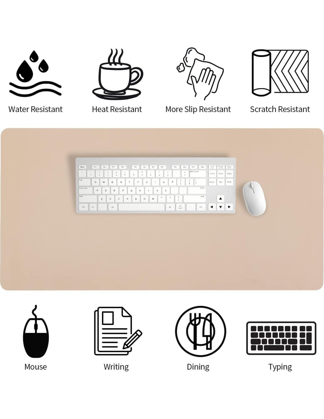 - [Impermeable y Fácil de Limpiar] La alfombrilla de teclado de material de cuero PU es impermeable y resistente al calor, fácil de limpiar. Puede proteger perfectamente tu escritorio de bebidas, tinta y otros líquidos. Para limpiar, solo limpia las manchas de su superficie con un paño húmedo. Ten en cuenta que su respaldo de gamuza no es impermeable.