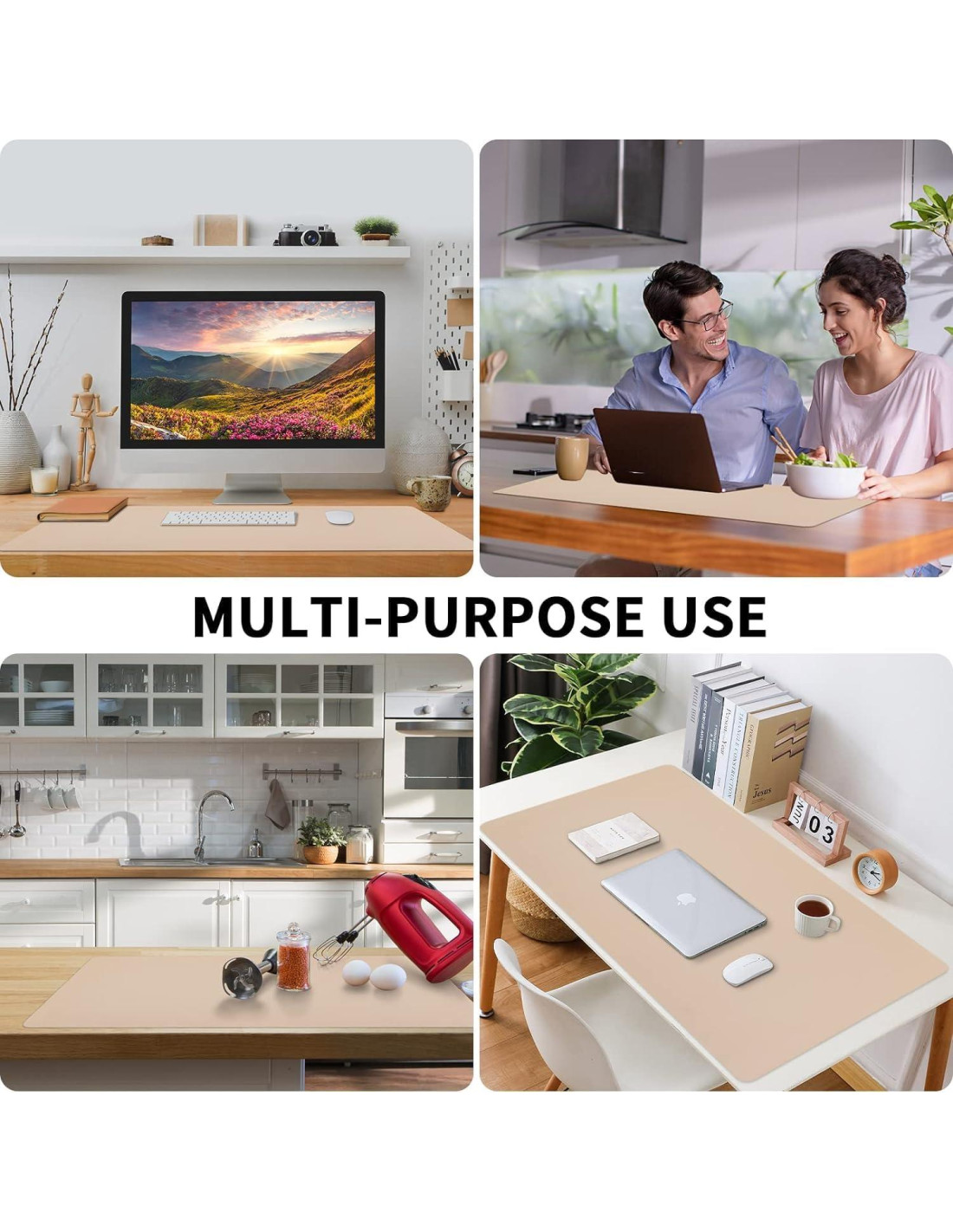 - [Base Antideslizante con Gamuza] El material de gamuza artificial utilizado en la parte posterior de la alfombrilla de escritorio tiene una excelente estabilidad antideslizante y suavidad, por lo que no te moverás fácilmente al usar el escritorio de escritura y puedes asegurar la seguridad de todos tus artículos de escritorio.